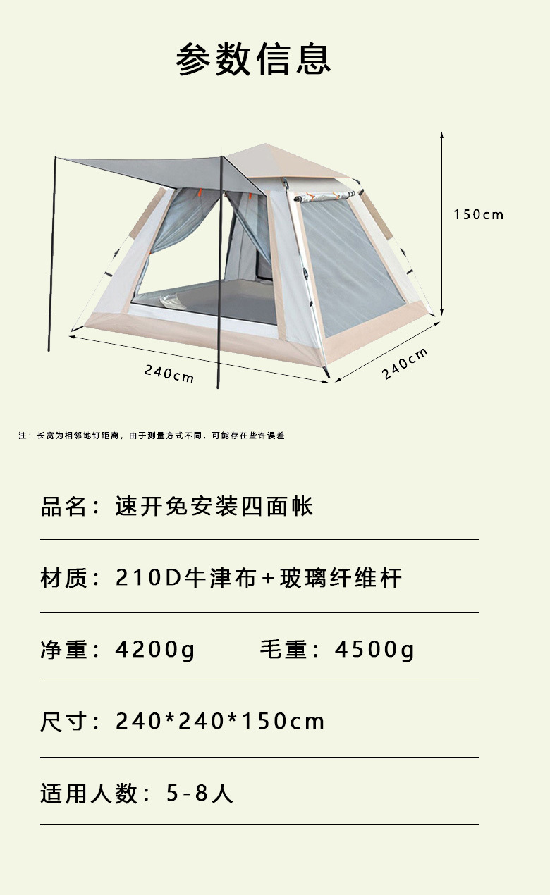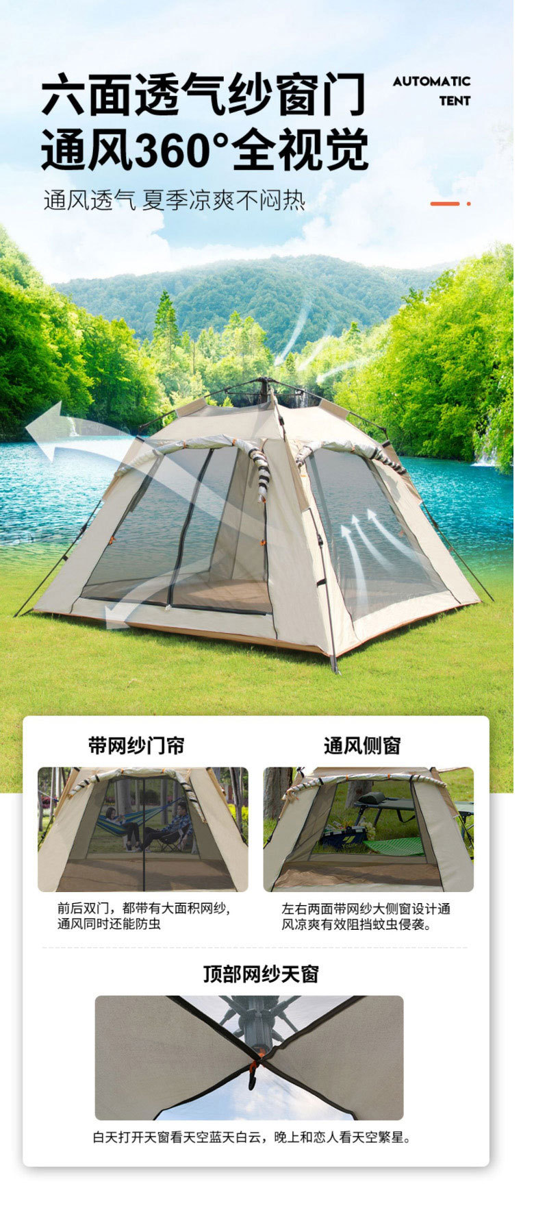 야외 텐트, 자외선 차단, 방풍, 모기 방지, 빠른 설치 필요 없음, 접이식, 방수, 야외 캠핑, 피크닉, 사방 차양