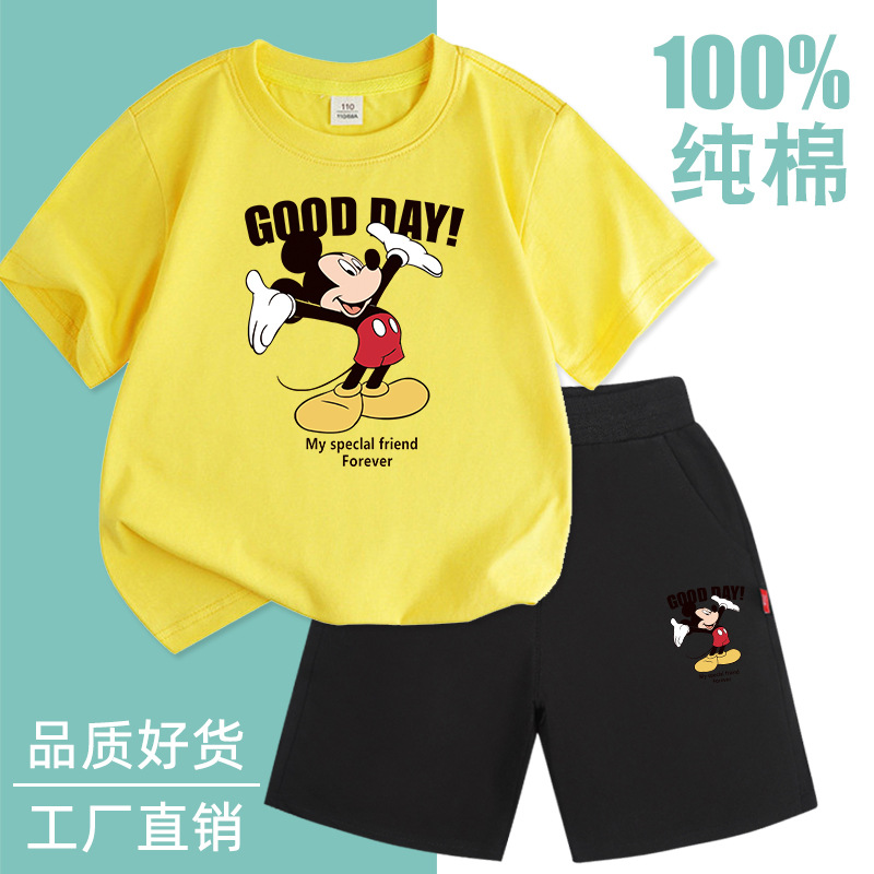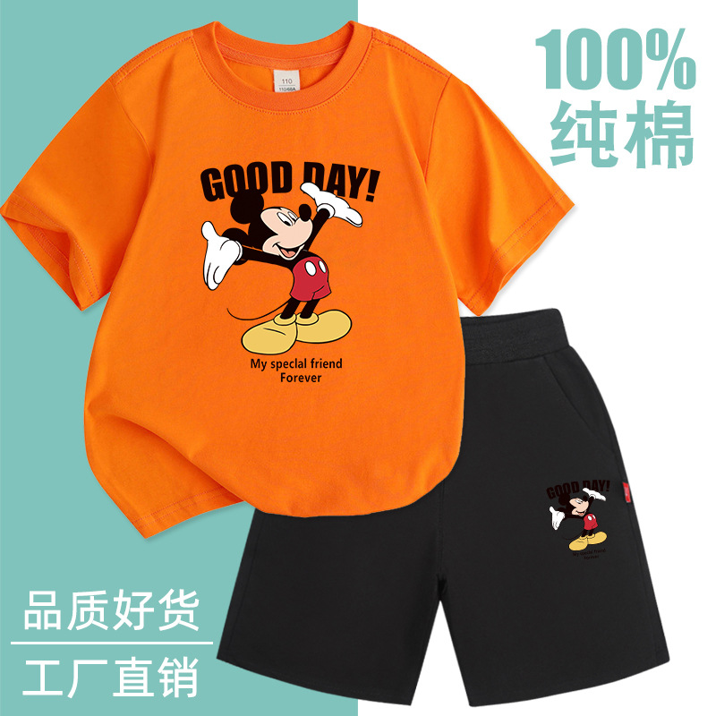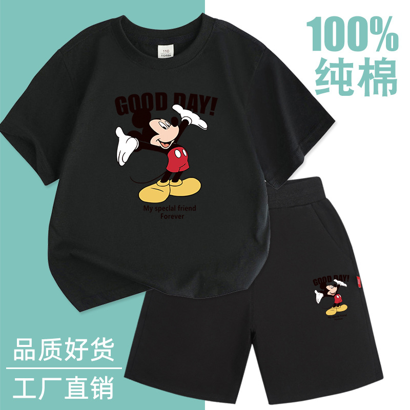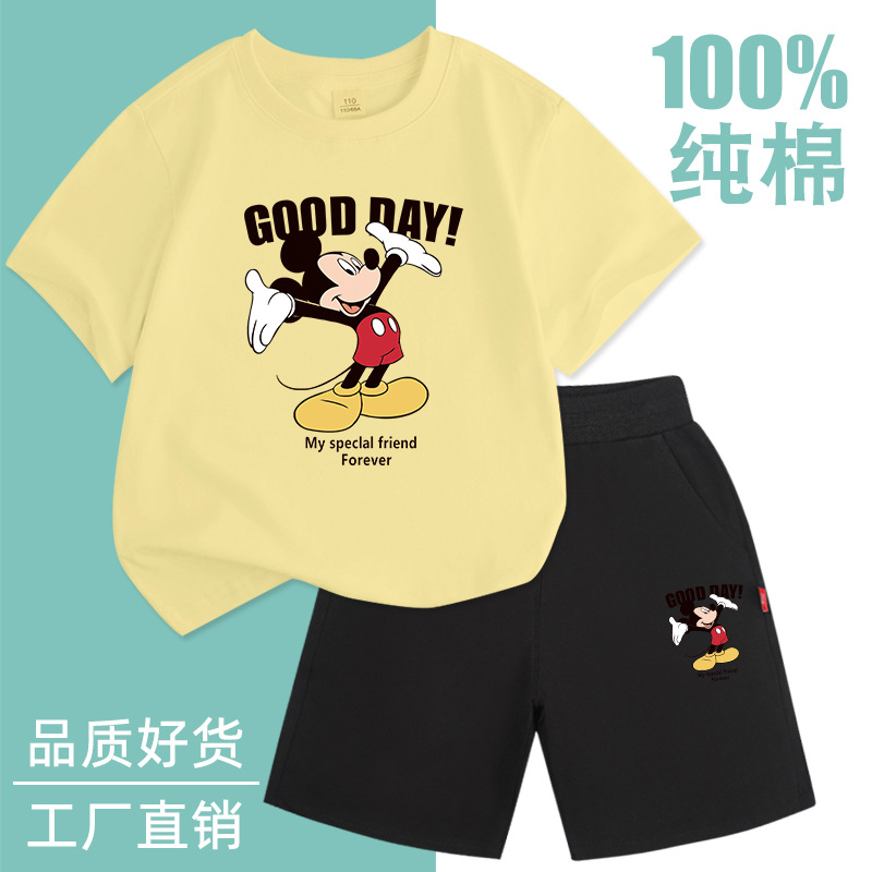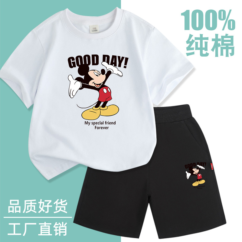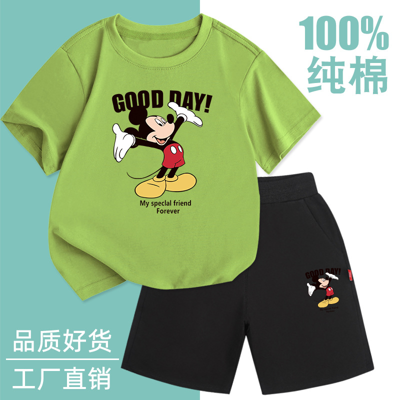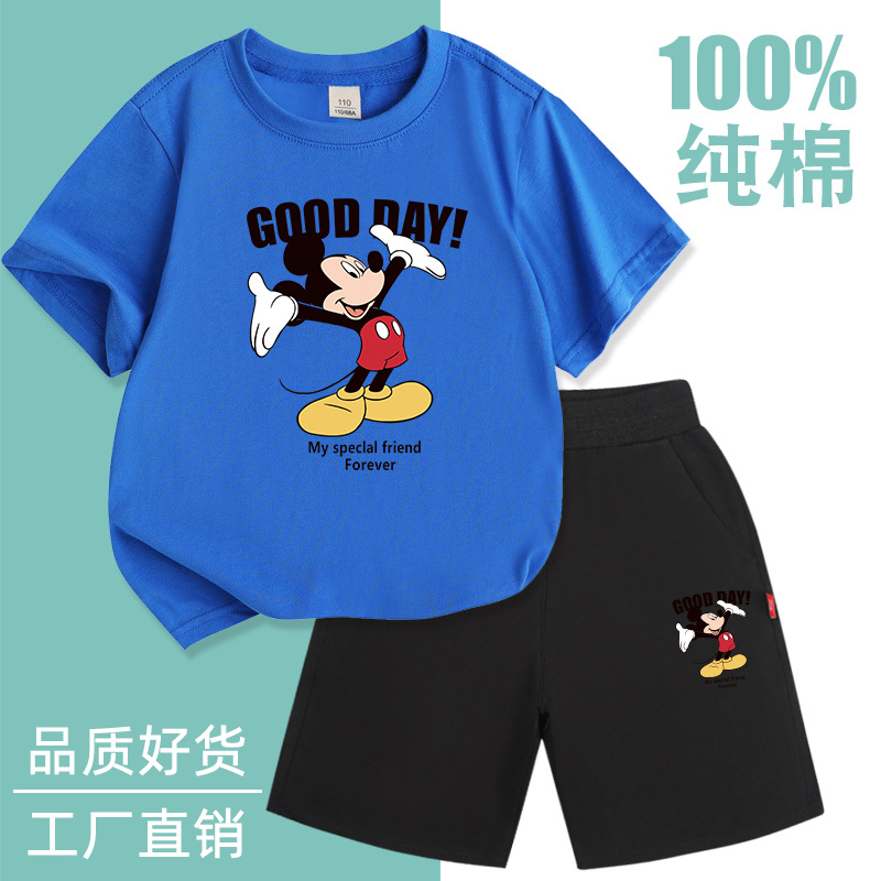 Spot 소년 반팔 양복 순면 얇은 2025 여름 신작 아동복 세련된 반바지 투피스 세트스토어 가기