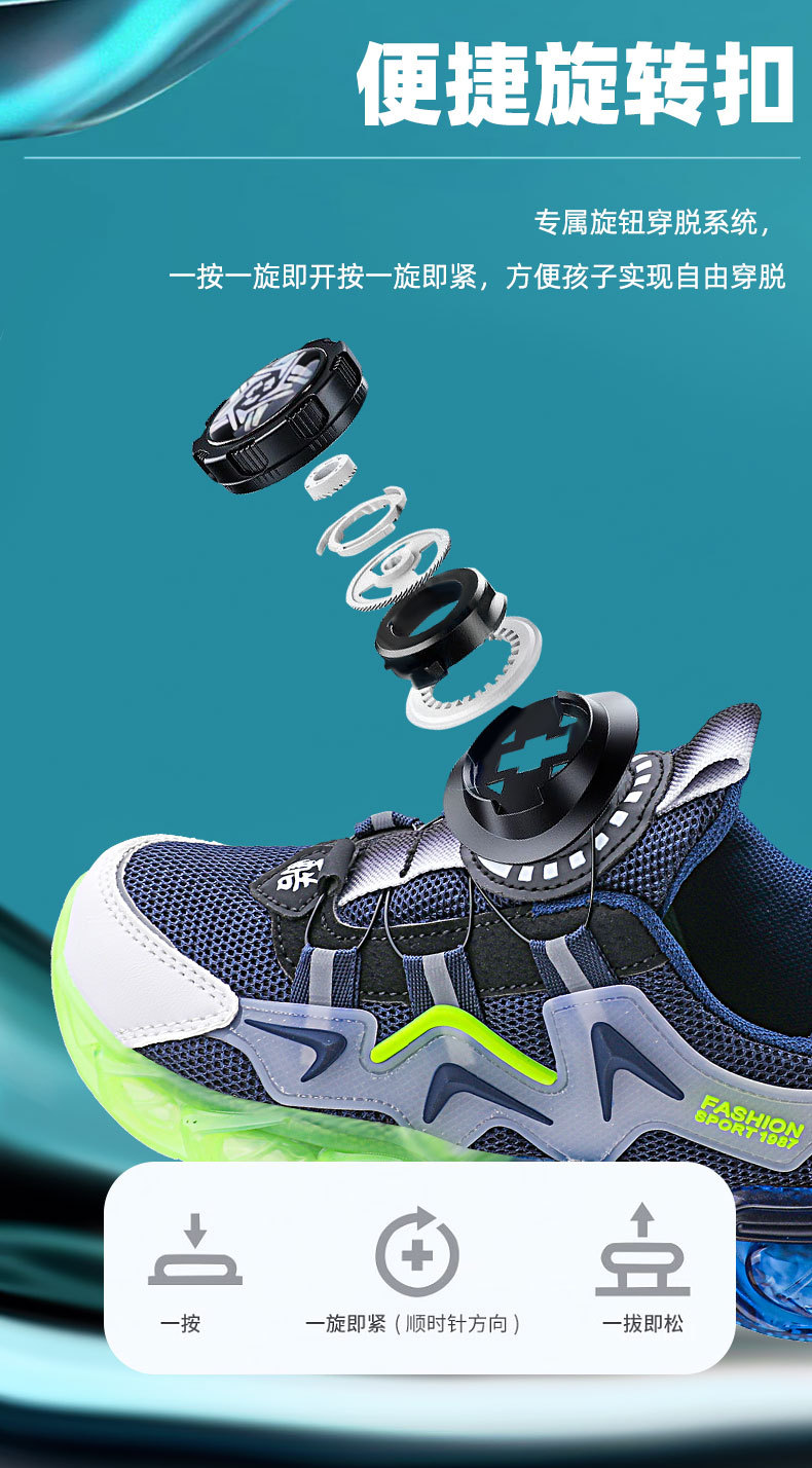 2025년 새로운 여름 스타일 중대형 어린이 회전 버튼 메쉬 신발 학생용 경량 운동화 어린이 신발 통기성 및 캐주얼