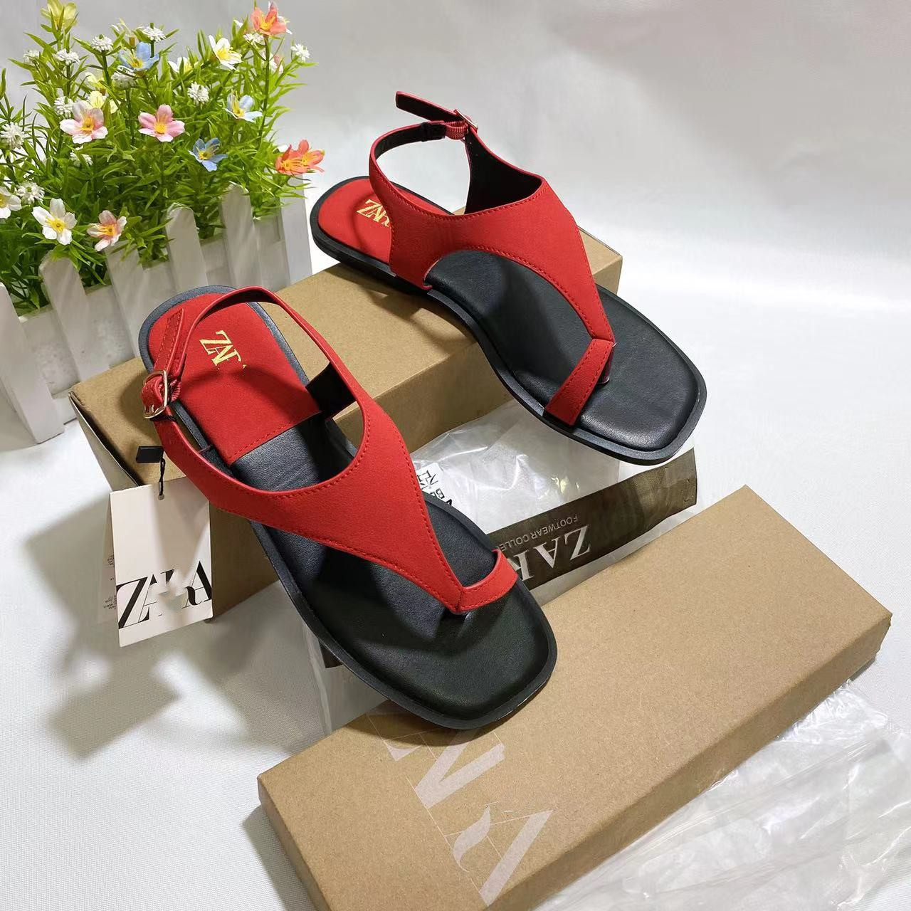 ZA의 새로운 여름 스타일 슬리퍼 샌들 유럽과 미국의 인터넷 연예인 같은 패션 대형 여성 신발 샌들스토어 가기