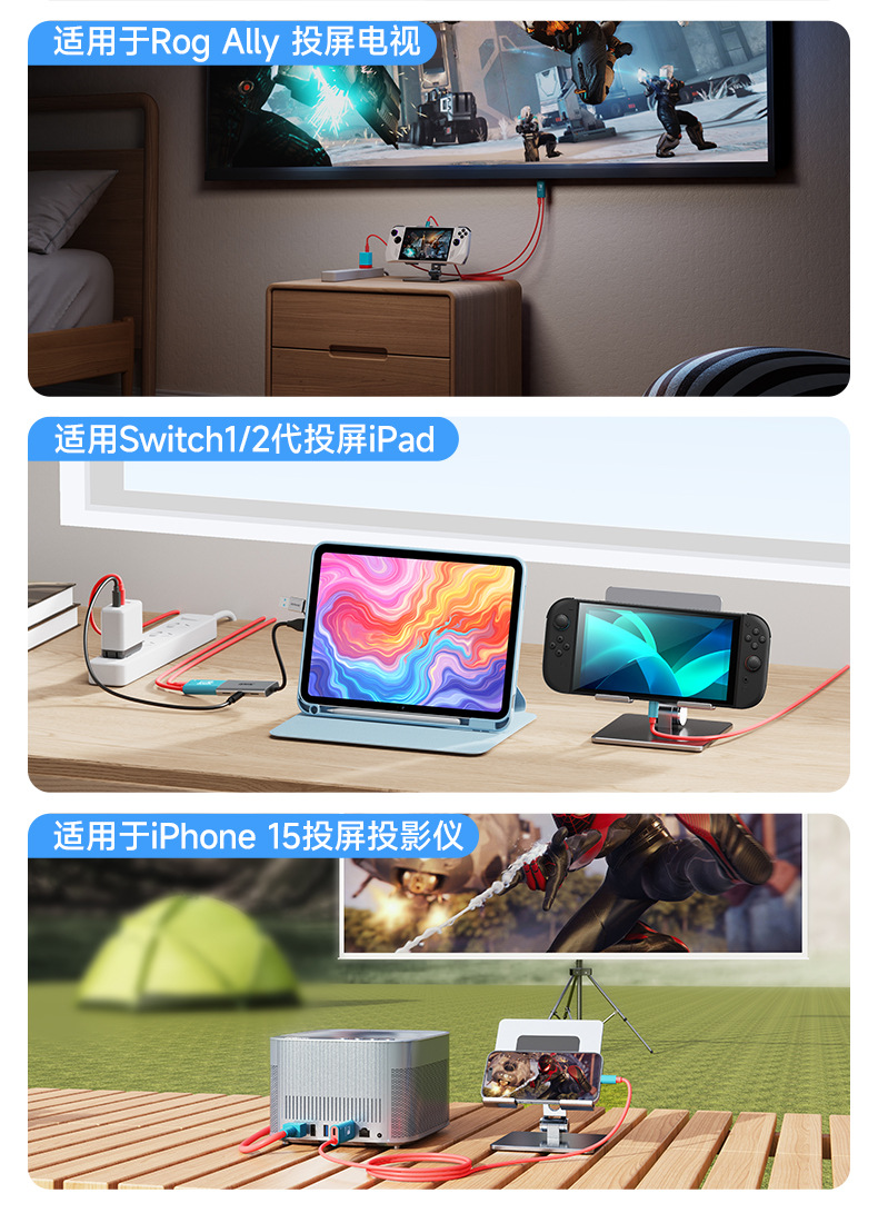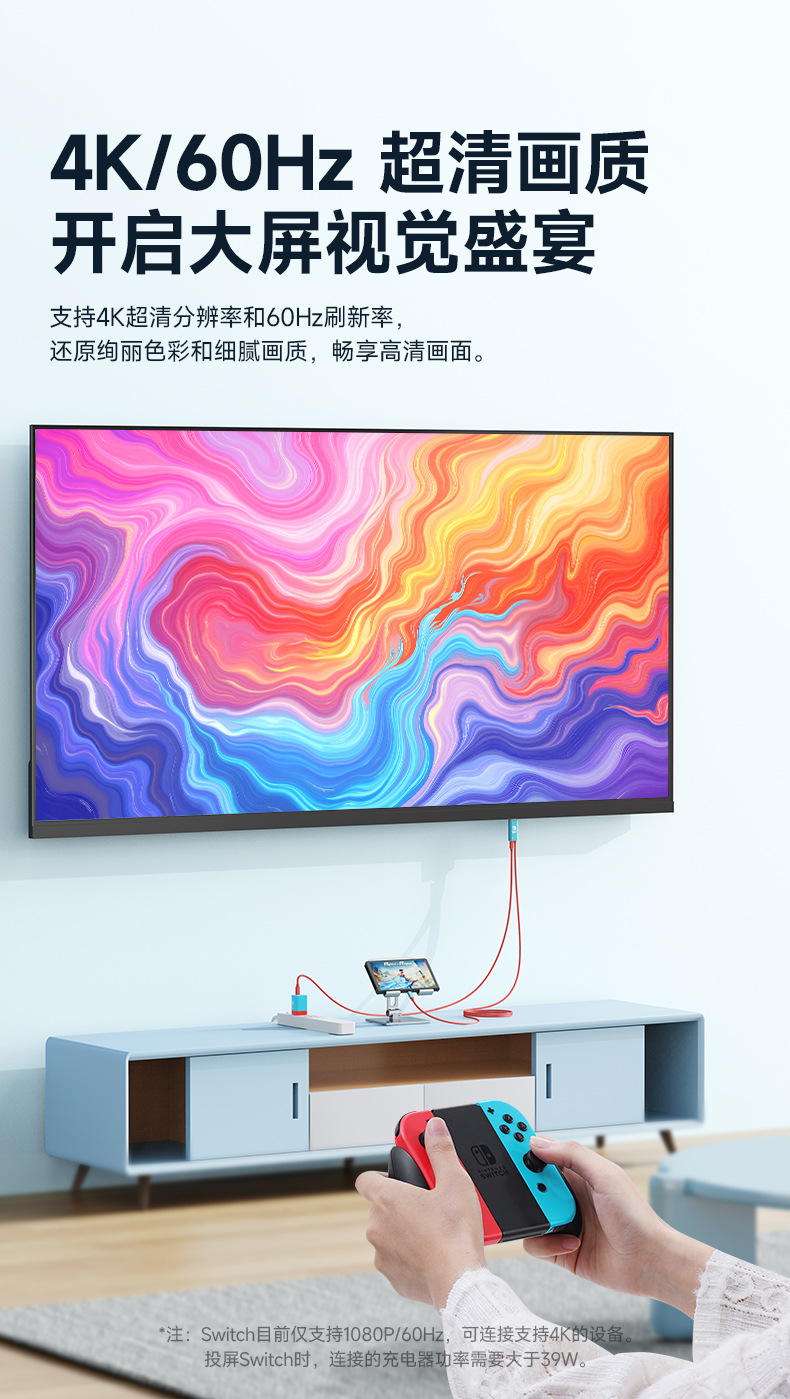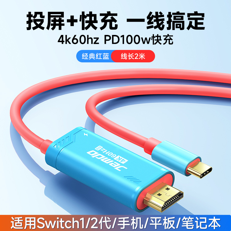 • 【4K144Hz | PD100W] 빨간색과 파란색 2m - 고화질 화면 프로젝션_Switch2/NS/OLED에 적용 가능
