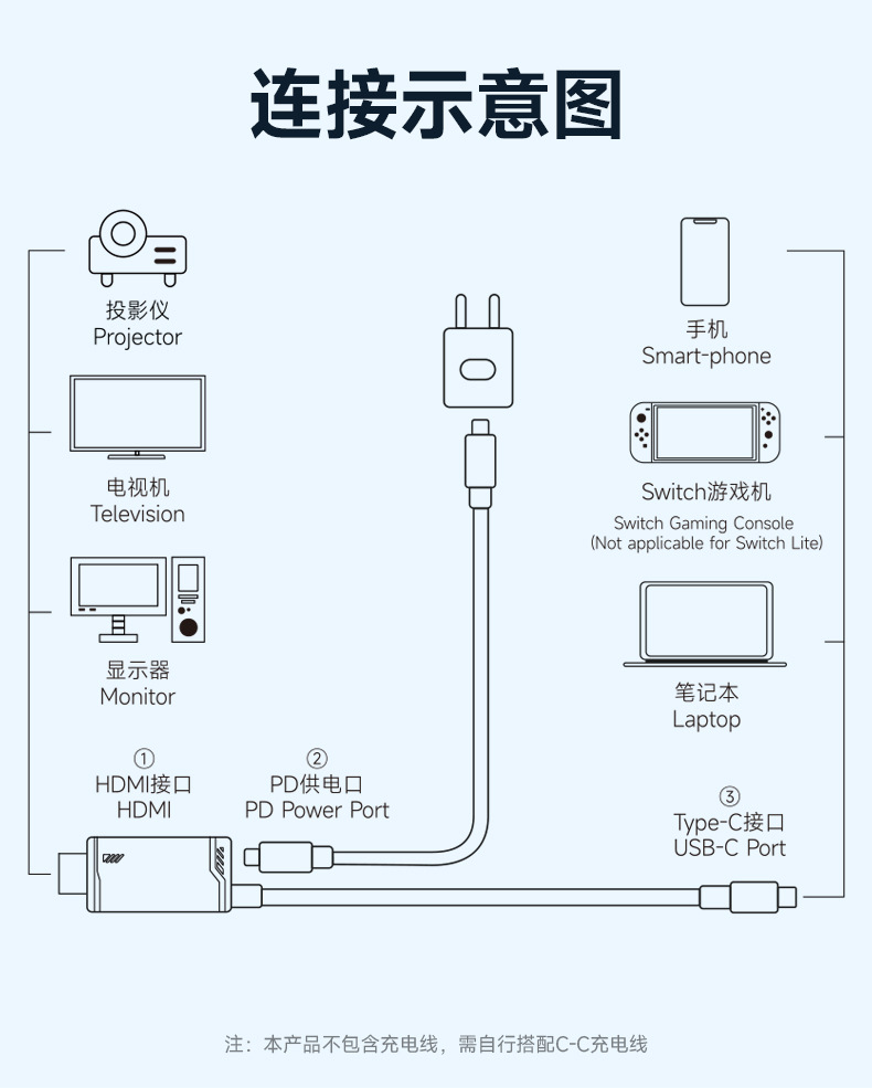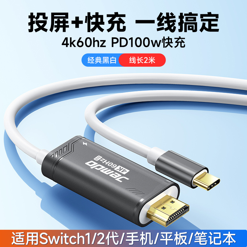 • 【4K60Hz | PD100W] 흑백 2m - 고화질 화면 프로젝션_Switch2/NS/OLED에 적용 가능
