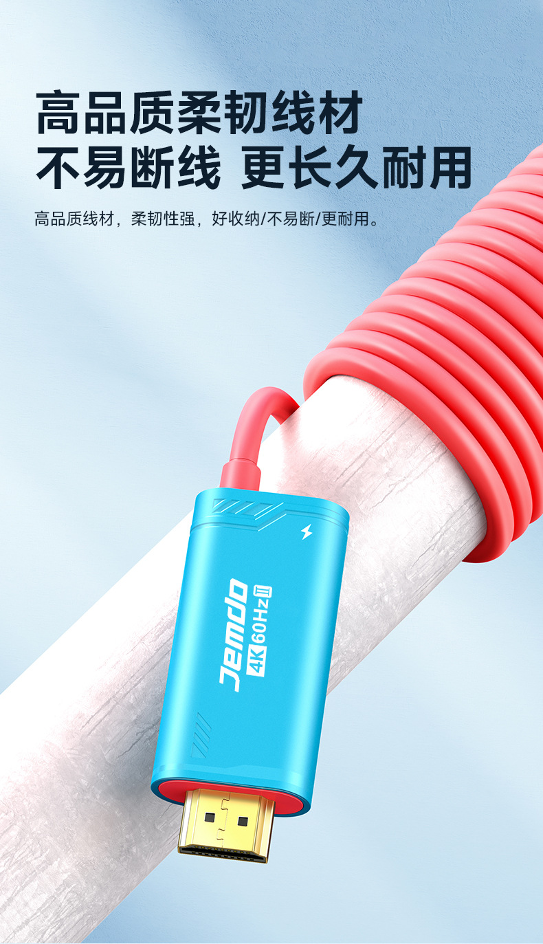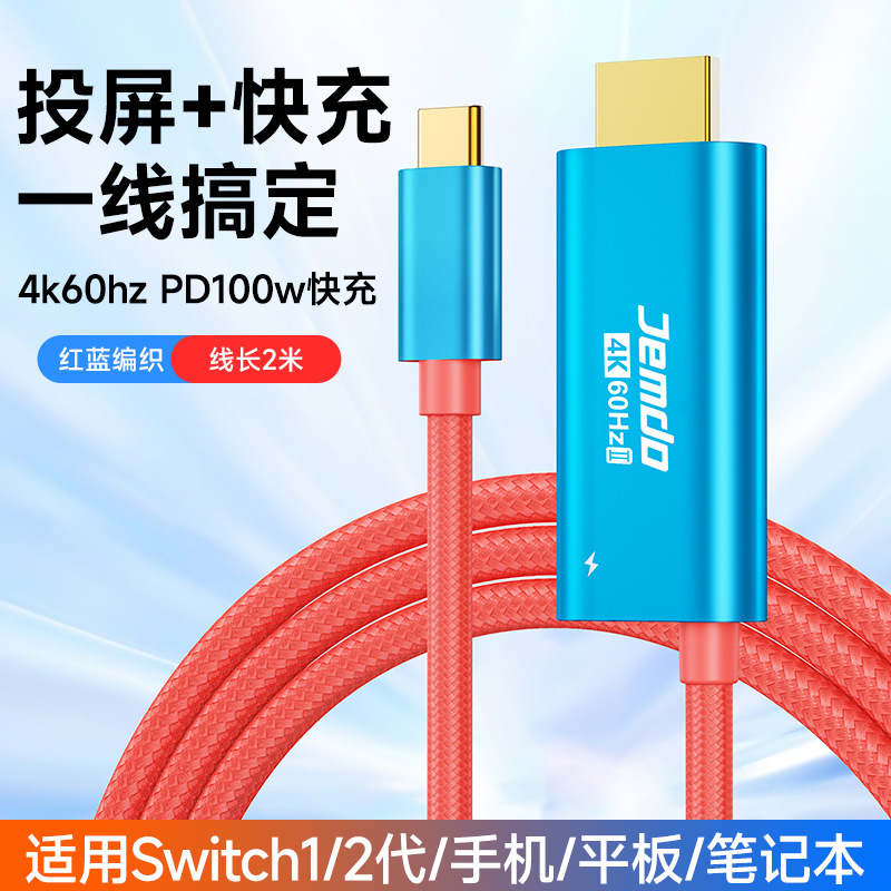 • 【4K60Hz | PD100W] 빨간색과 파란색 2m - 고화질 스크린 프로젝션 케이블_Switch2/NS/OLED에 적합
