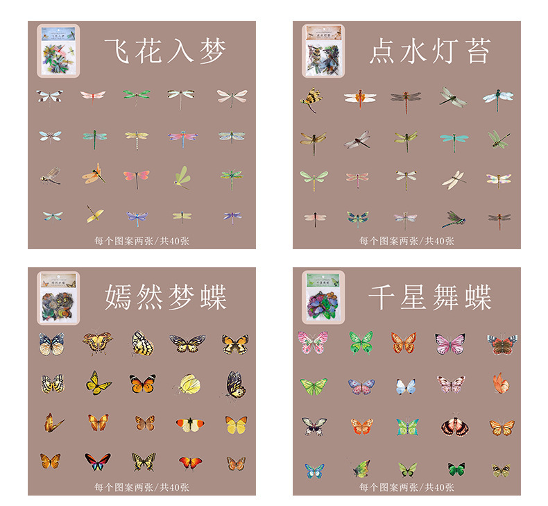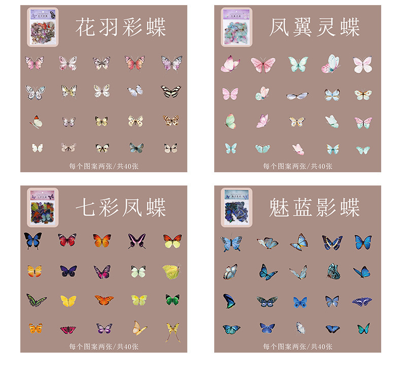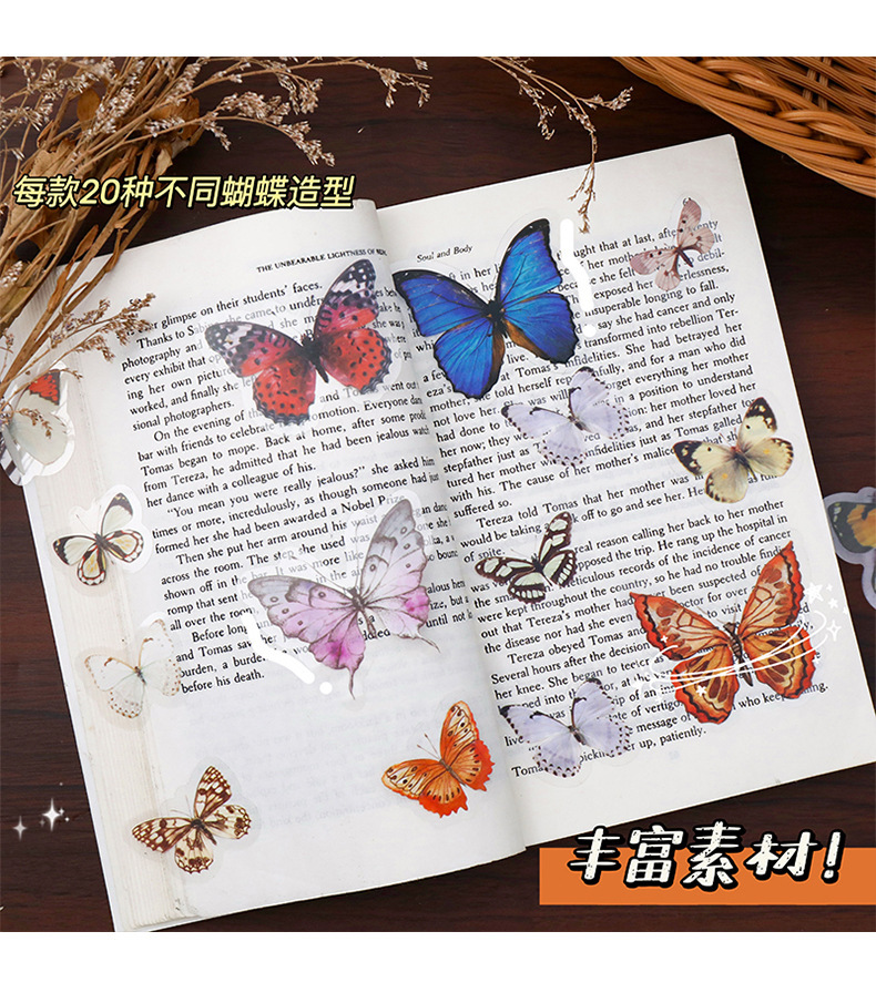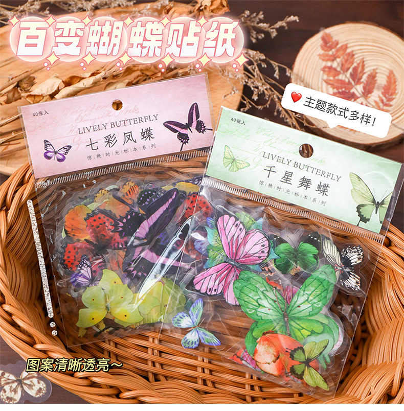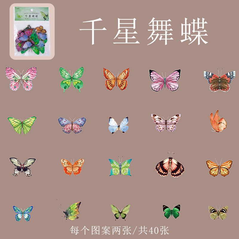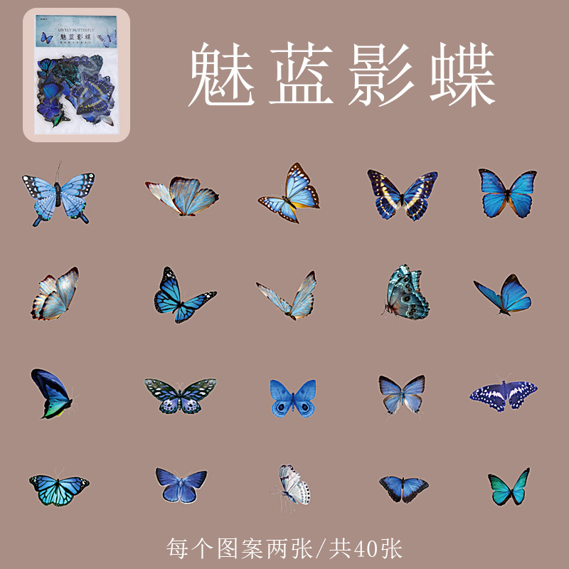 나비 PET 스티커 팩 날개 표본 시리즈 나비 핸드북 DIY 특수 모양의 장식 재료 스티커 40 나비 스티커스토어 가기