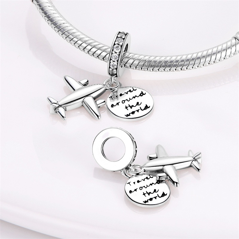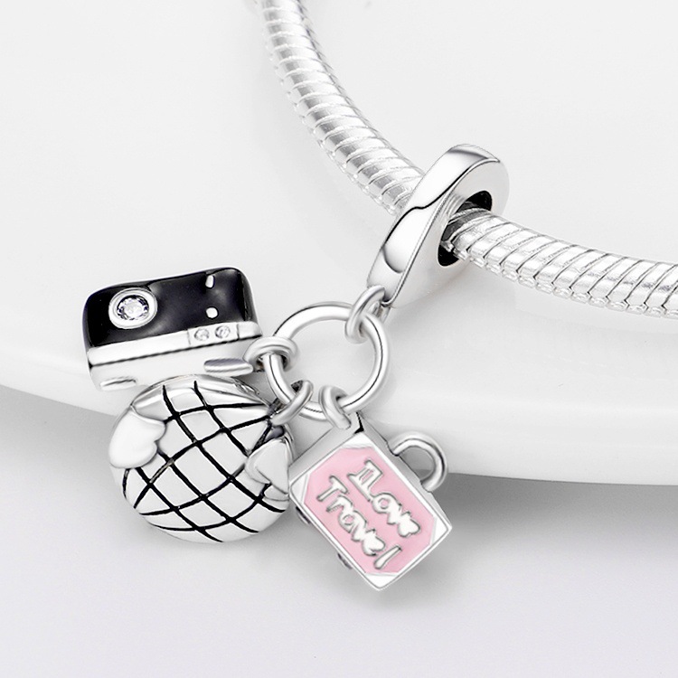 제조 업체 뜨거운 판매 여행 스타일 비행기 가방 카메라 매력 펜던트 비즈 구리 실버 도금 DIY 쥬얼리 팔찌 액세서리스토어 가기