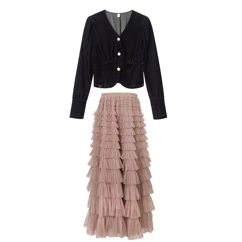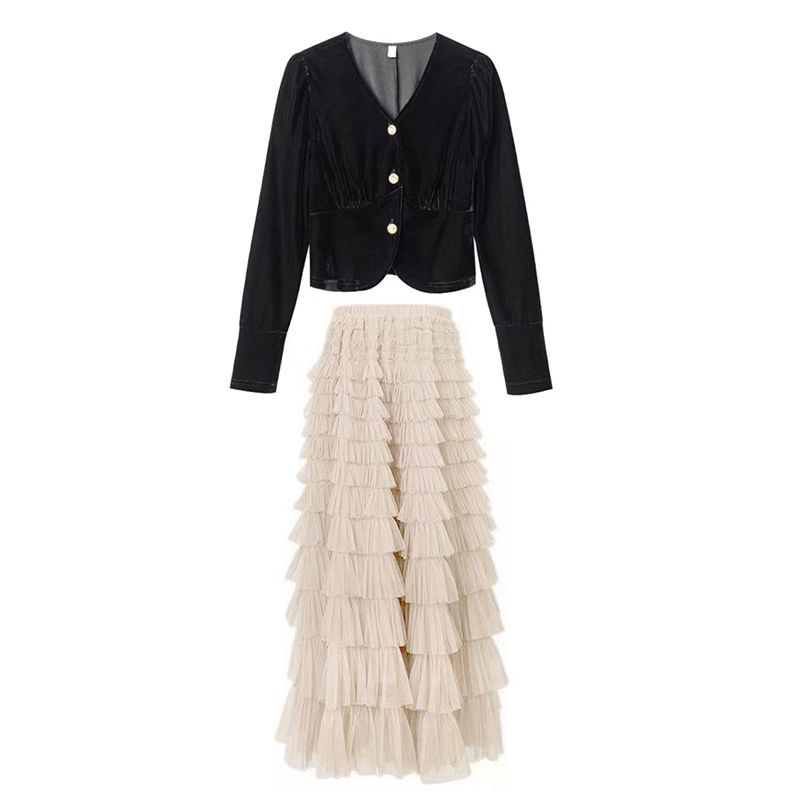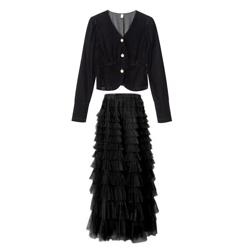 2024년 가을 새로운 인기 의상 여성 인터넷 연예인 패션 연령 감소 양복 상의와 스커트 투피스 세트