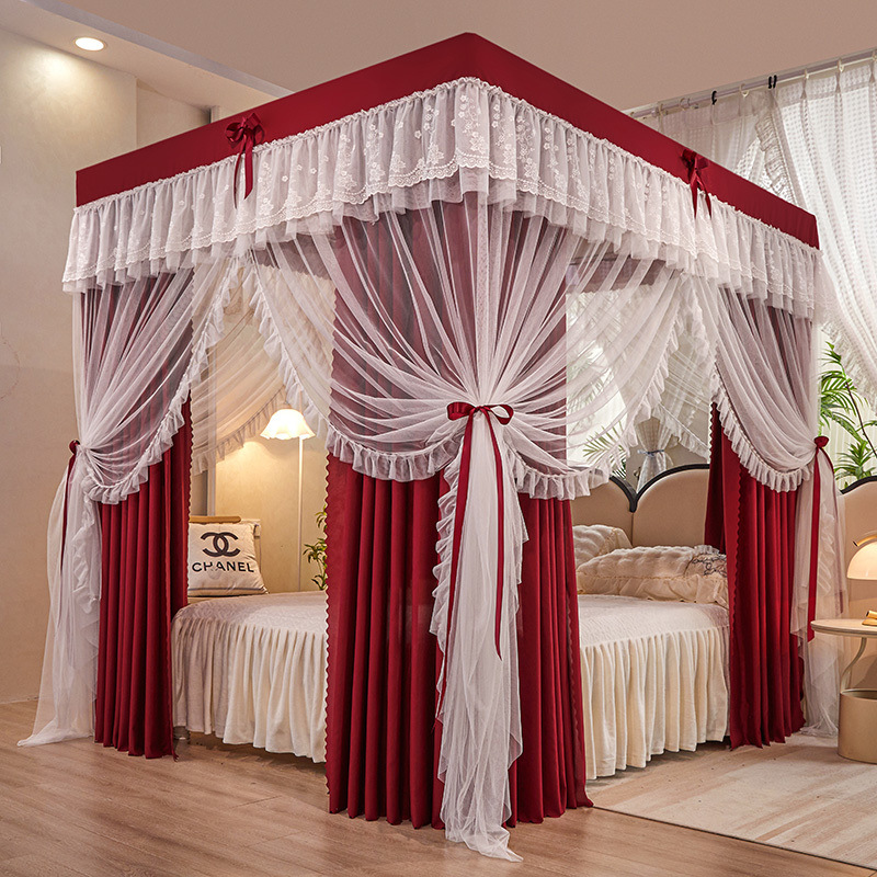 가정용 모기장과 침대 커튼 일체형 공주풍 차광 및 방진 침대 커튼 암호화 및 두꺼운 궁전 스타일 3 도어 모기장스토어 가기