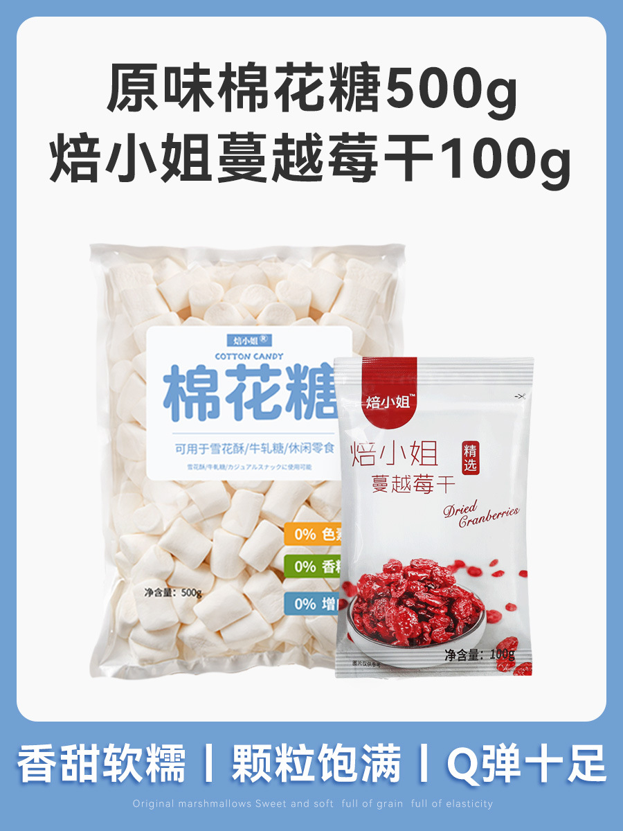 • [저단맛세트] 미스베이킹 마시멜로 500g + 미스베이킹 건조크랜베리 100g