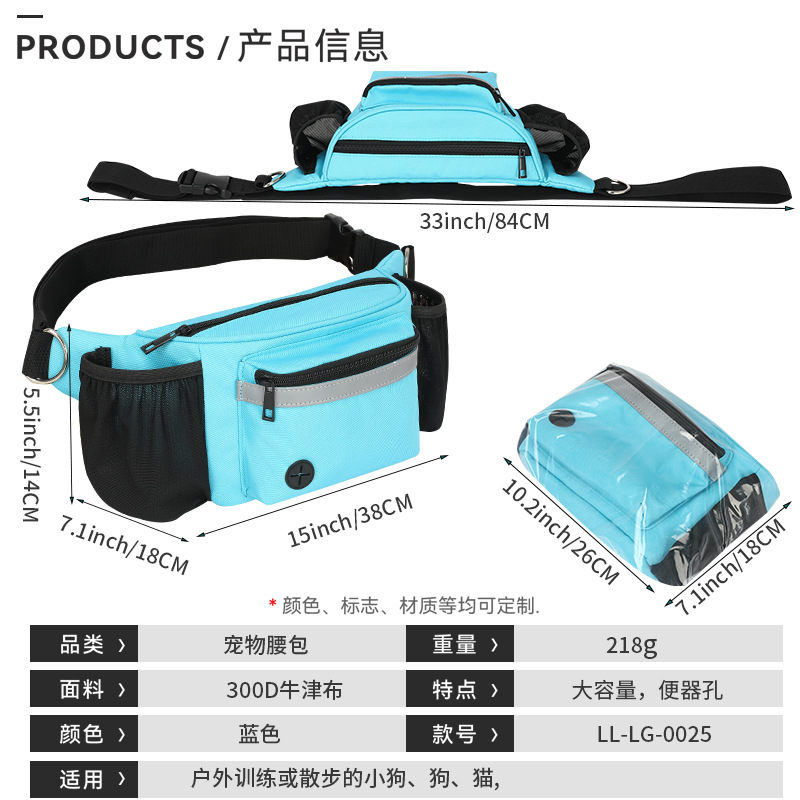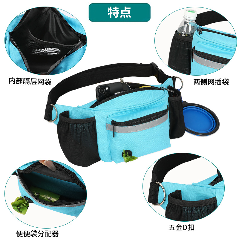 야외 산책용 휴대용 다기능 애완동물 허리 가방 제조업체 물병 주머니 포함 애완동물 훈련 허리 가방 수납 가방스토어 가기