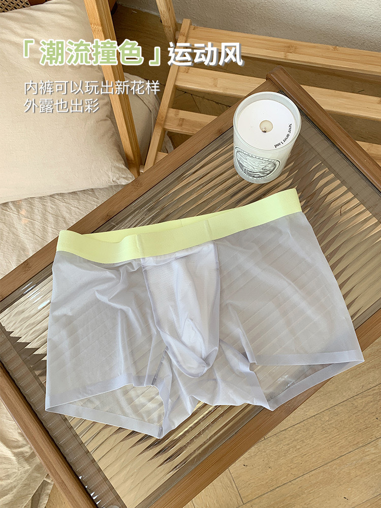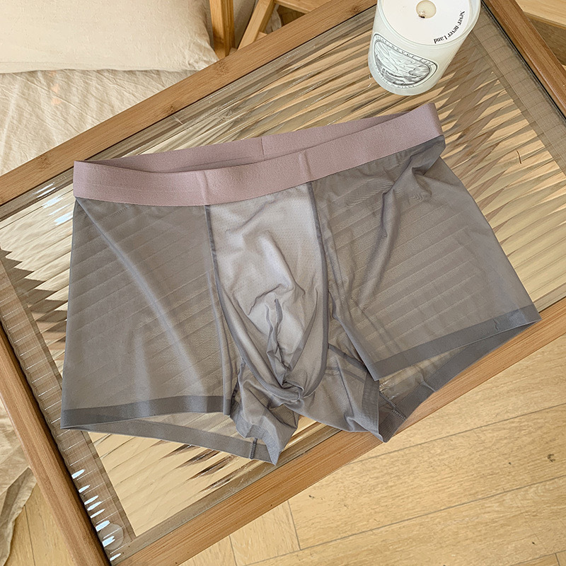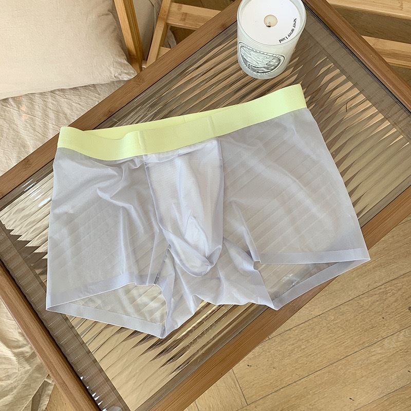 20D 초박형 투명 아이스 실크 남성 속옷 3A 항균 통기성 가랑이 속건성 누드 느낌 이음매없는 중간 허리 복서 반바지