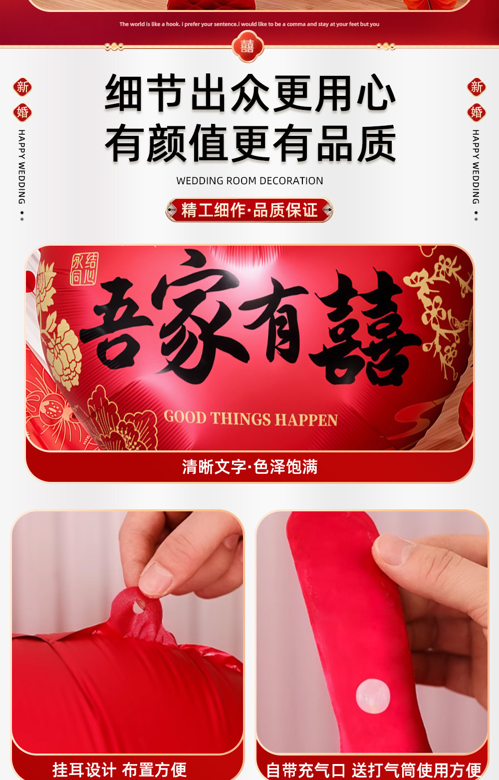 • 1.5M 초대형 러브 알루미늄 필름 볼(빨간색 - 확실히 사랑해요)과 핸드 펌프가 함께 제공됩니다.