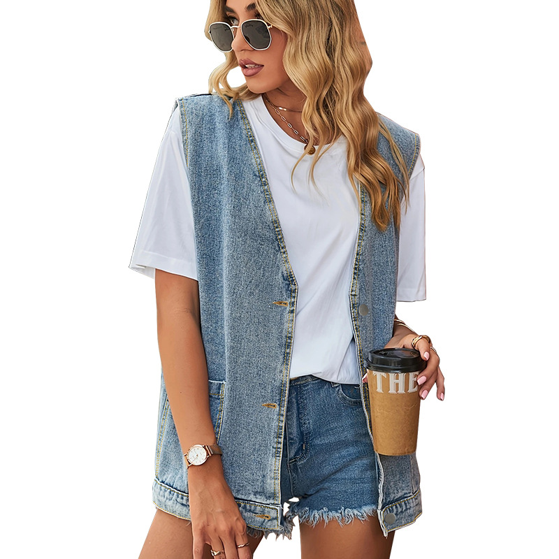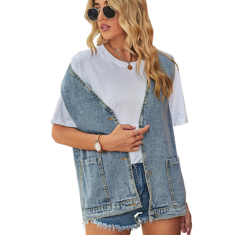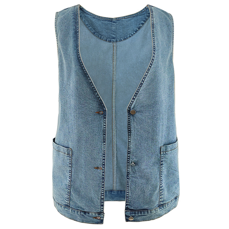 218713 크로스보더 플러스 사이즈 여성용 루즈 버전 빅 포켓 데님 조끼 여름 조끼 민소매 자켓 직접 판매