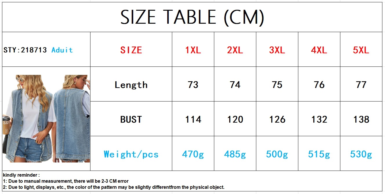 218713 크로스보더 플러스 사이즈 여성용 루즈 버전 빅 포켓 데님 조끼 여름 조끼 민소매 자켓 직접 판매스토어 가기