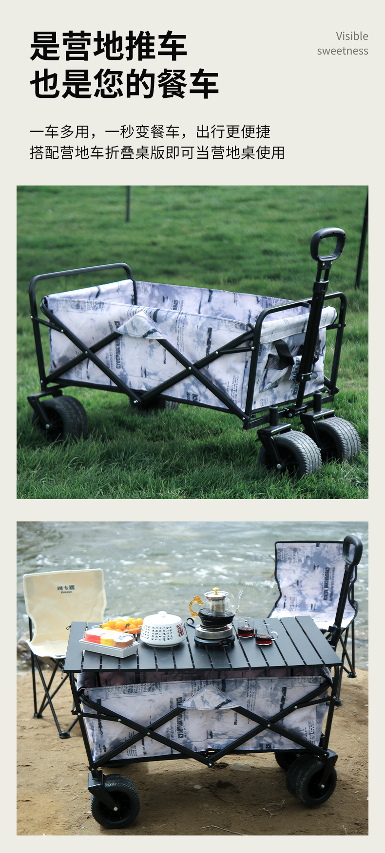 캠핑 카트 야외 접이식 캠핑 트레일러 캠핑카 피크닉 카트 대형 휴대용 카트 오프로드 휠
