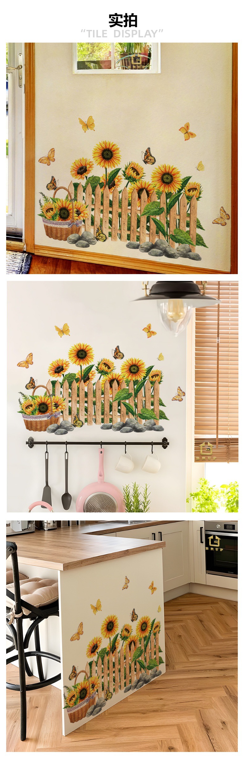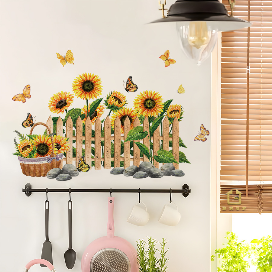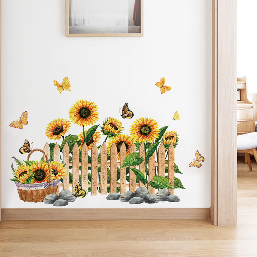 BR3909E 나비 해바라기 정원 울타리 자체 접착 장식 벽 스티커 신선한 햇빛 분위기 장식 스티커스토어 가기