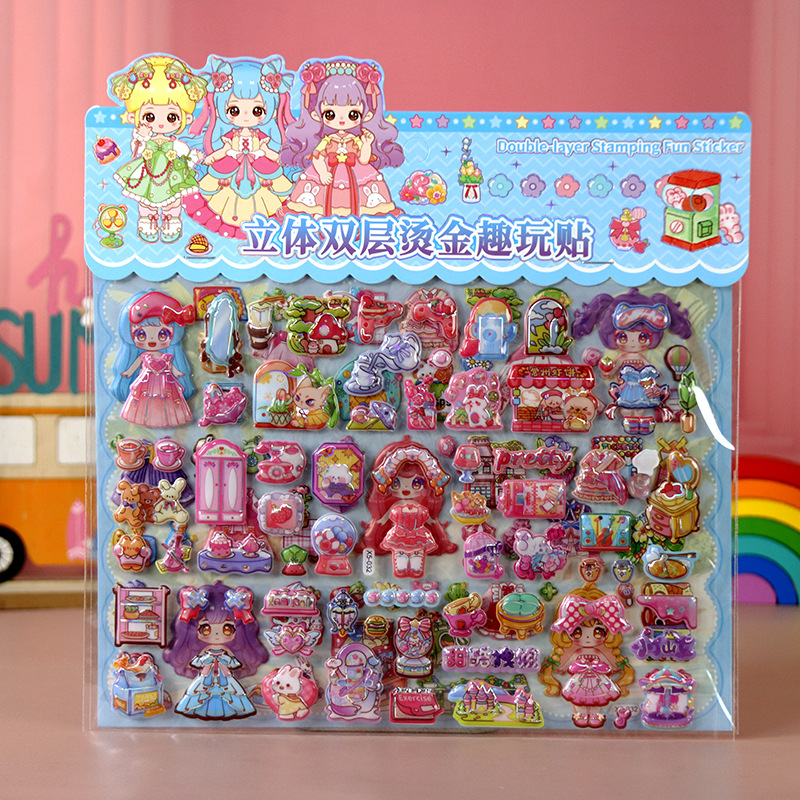 어린이 만화 스티커 쿠로미 멜로디 라부부 소녀 드레스업 3D 입체 이중층 버블 스티커스토어 가기