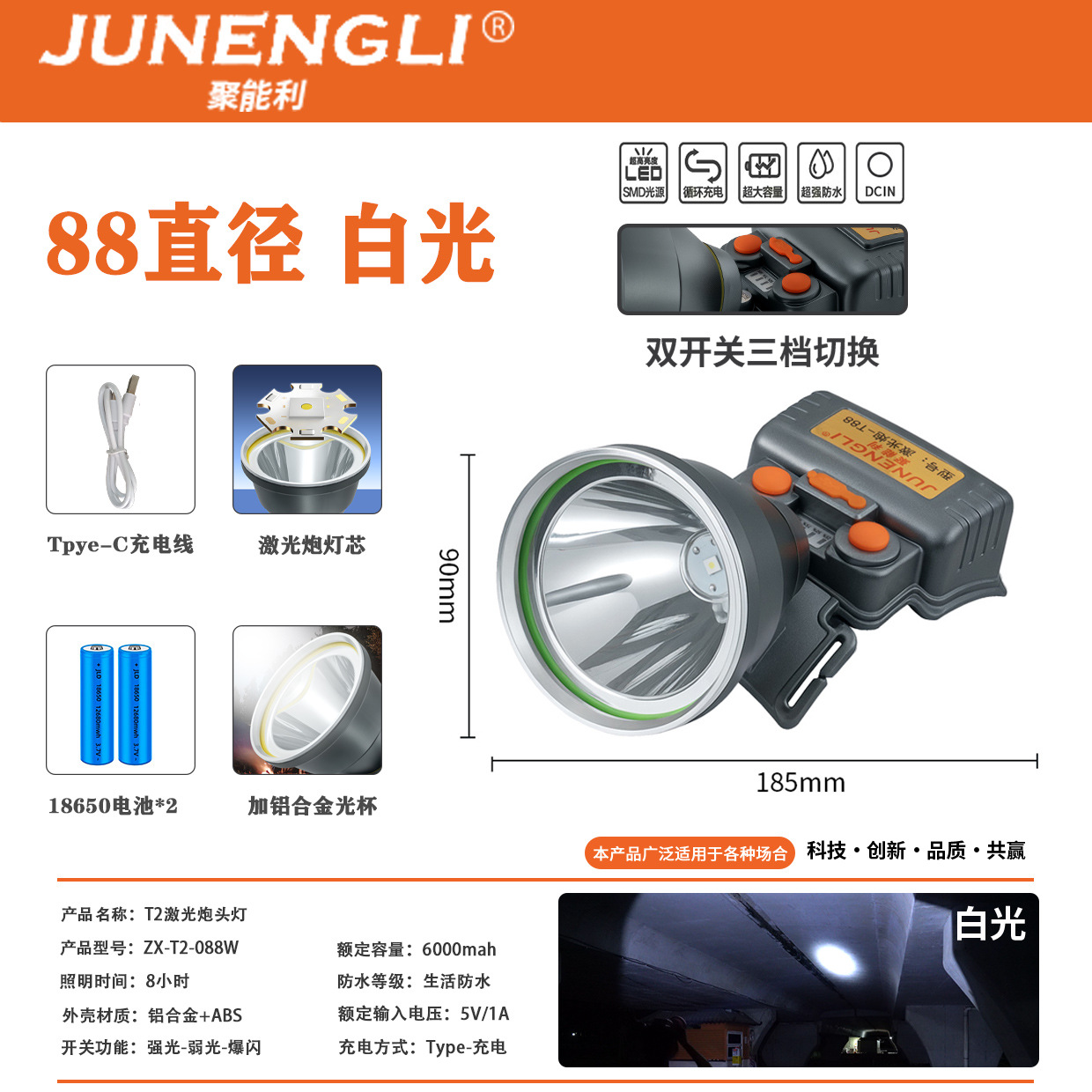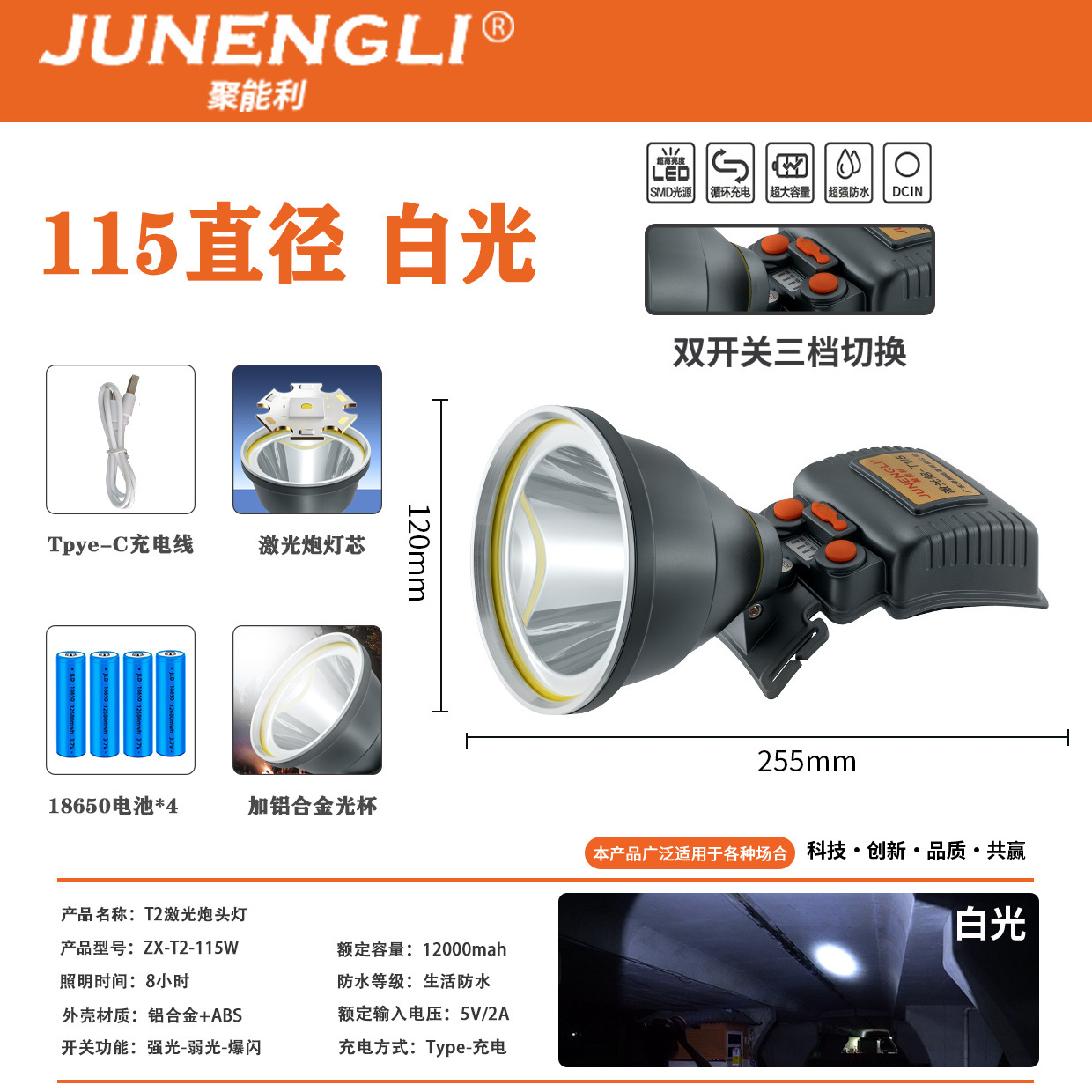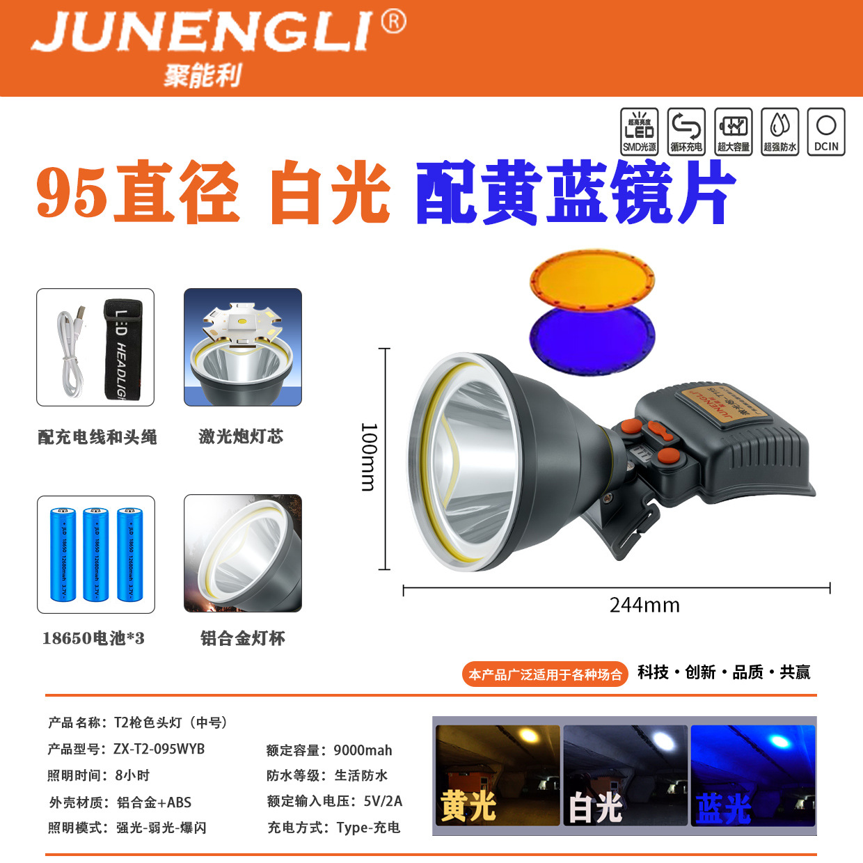 국경을 넘는 LED 고출력 레이저 포탑, 초강력 장거리 대용량 헤드램프, 야외 낚시 및 야간 낚시용 강광 도매