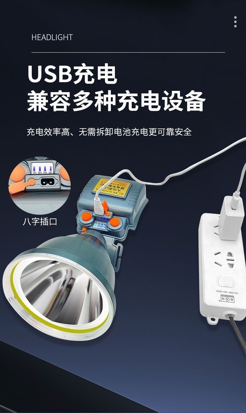 국경을 넘는 LED 고출력 레이저 포탑, 초강력 장거리 대용량 헤드램프, 야외 낚시 및 야간 낚시용 강광 도매스토어 가기