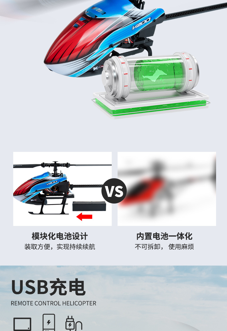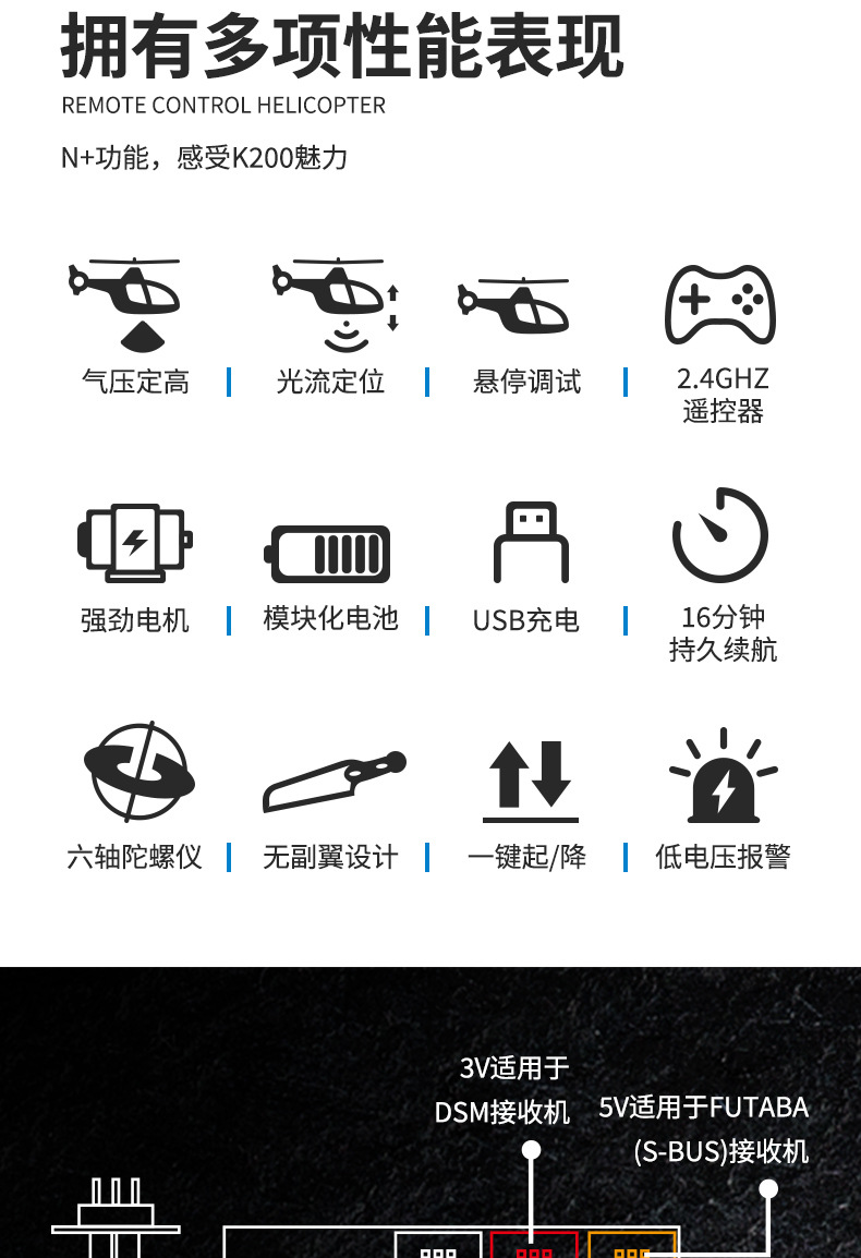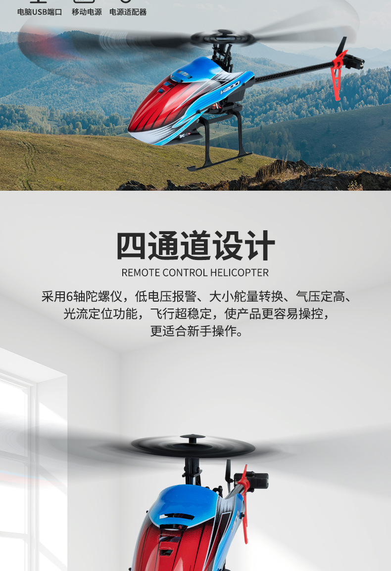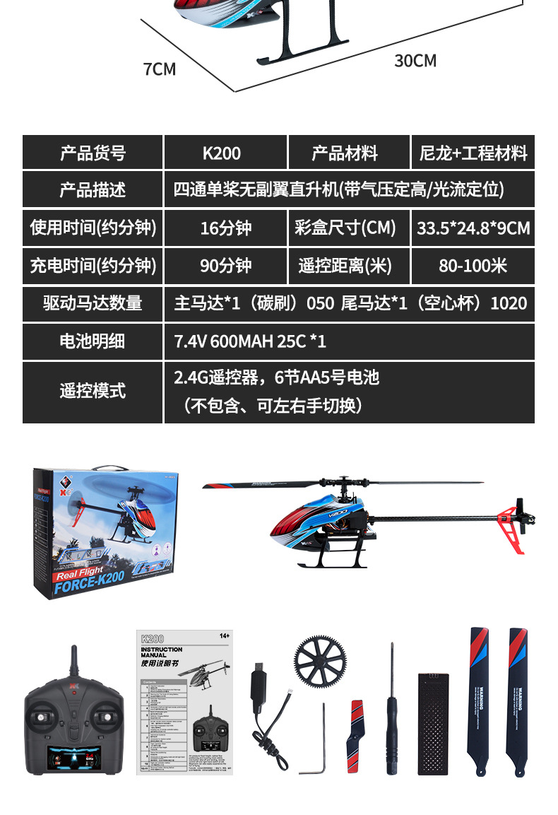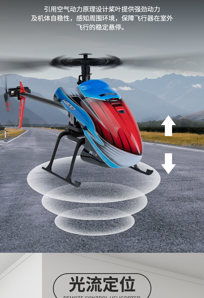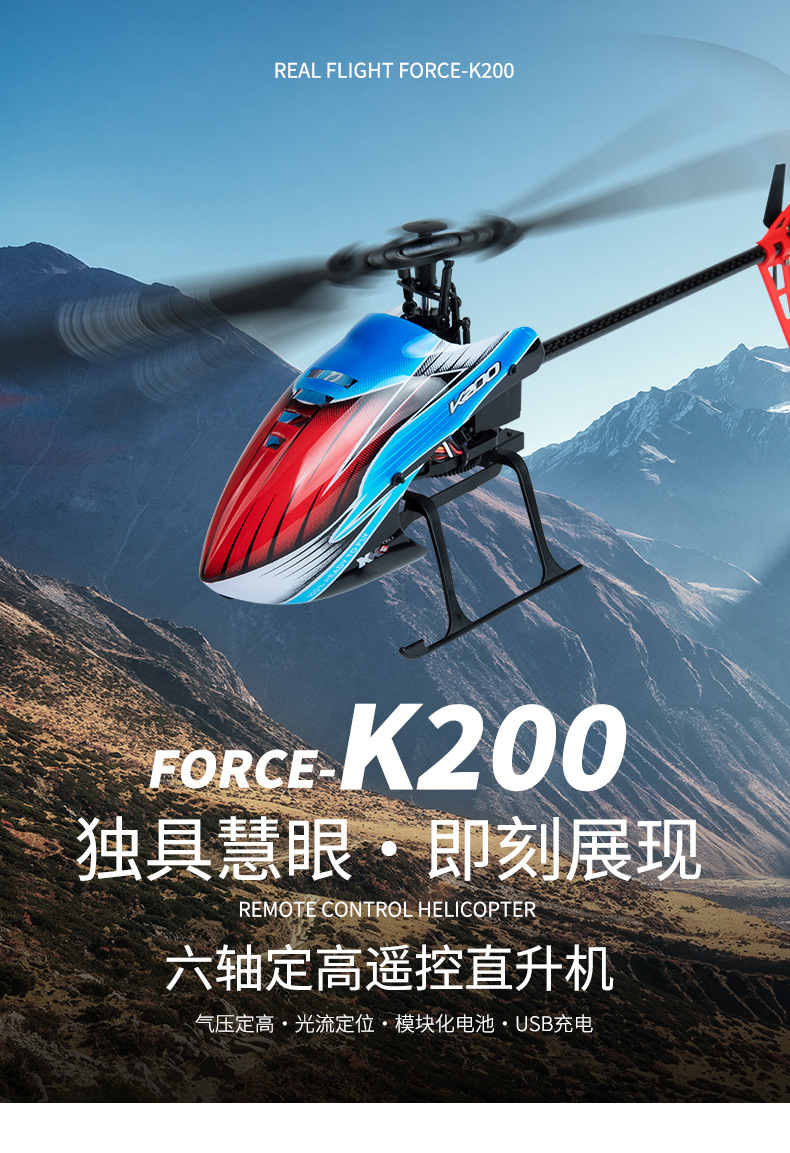 产品名称:伟力K200四通单桨无副翼直升机(带气压定高/光流定位)
