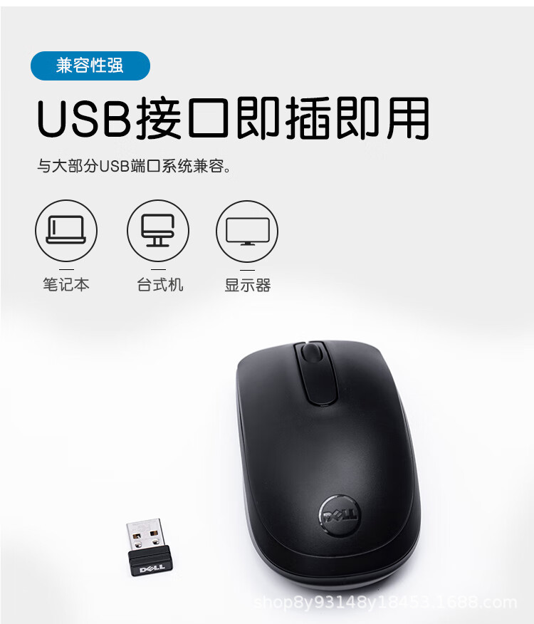 Dell(DELL) 무선 마우스 WM118 사무실 인체공학적 대칭 마우스 USB 인터페이스에 적합