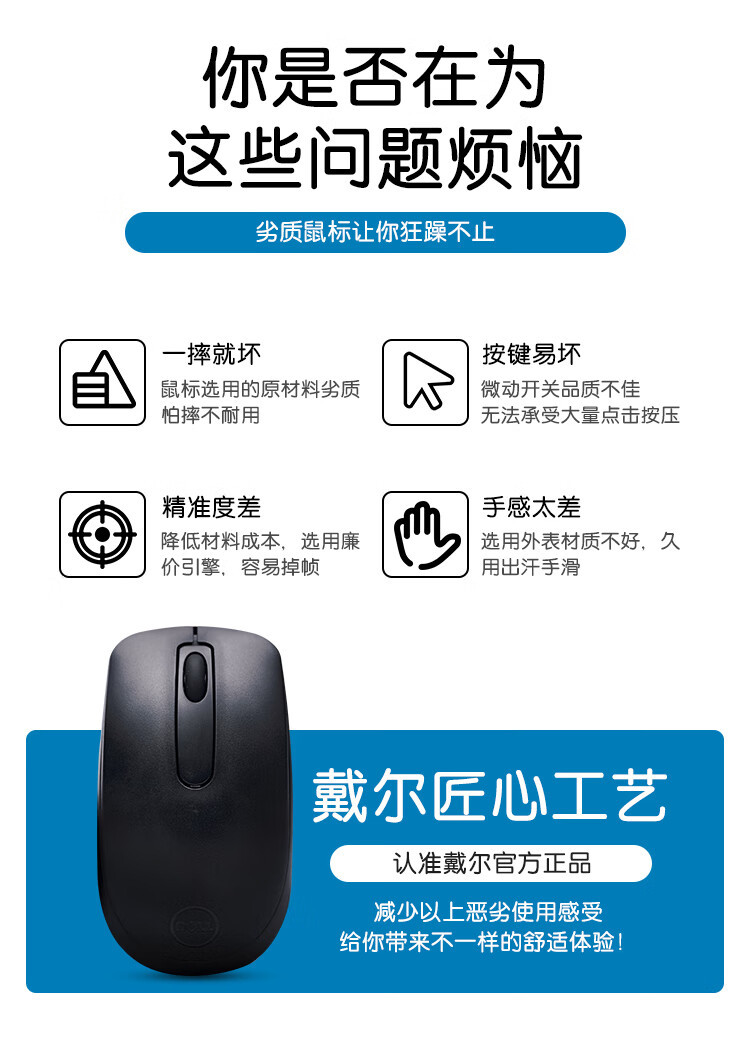 Dell(DELL) 무선 마우스 WM118 사무실 인체공학적 대칭 마우스 USB 인터페이스에 적합스토어 가기