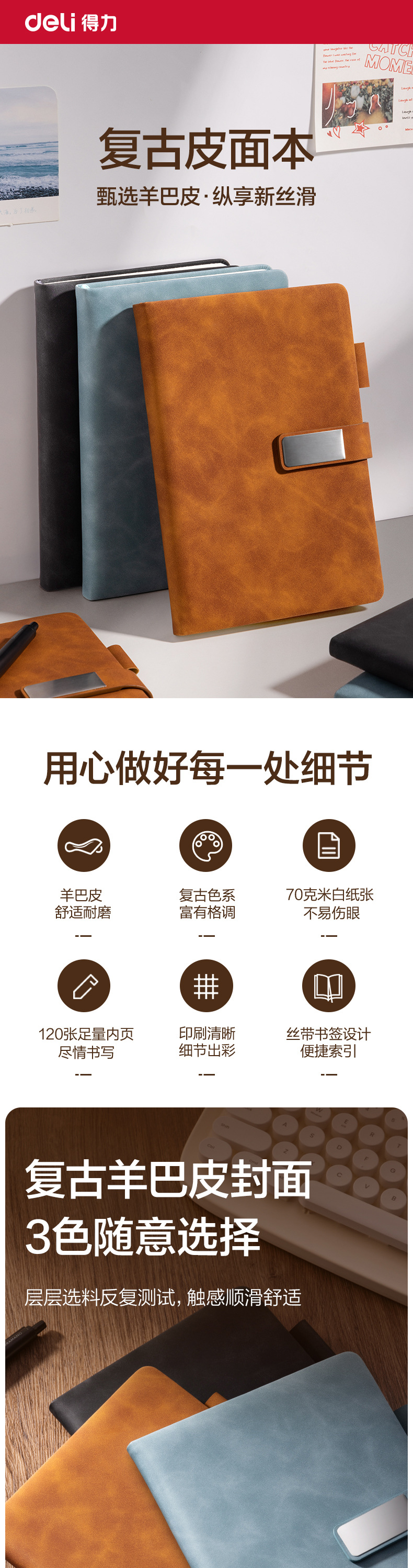 델리 BP153/154 마그네틱 버클 양가죽 노트 a5 노트 가로줄 초두꺼운 메모장 가죽 커버