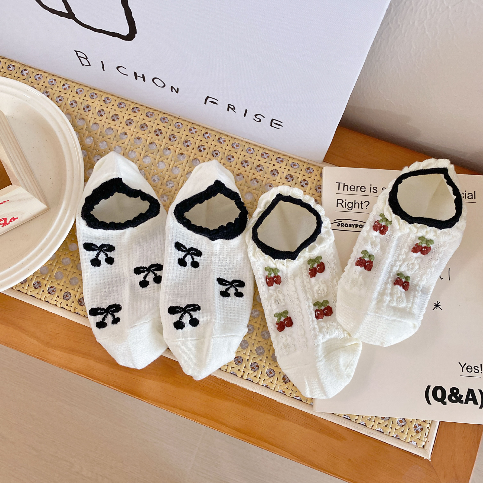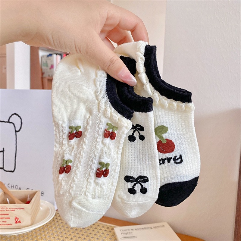 봄과 가을 양말 여성 보트 양말 일본과 한국 스타일 체리 보우 스트라이프 달콤한 소녀 대학 스타일 간단한 통기성 양말