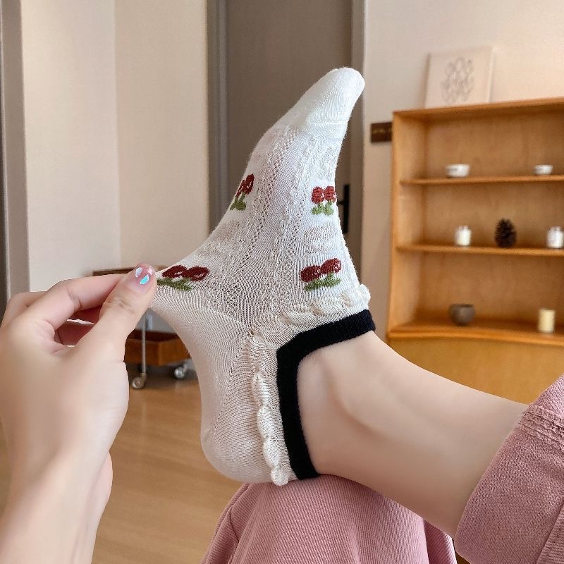 봄과 가을 양말 여성 보트 양말 일본과 한국 스타일 체리 보우 스트라이프 달콤한 소녀 대학 스타일 간단한 통기성 양말스토어 가기