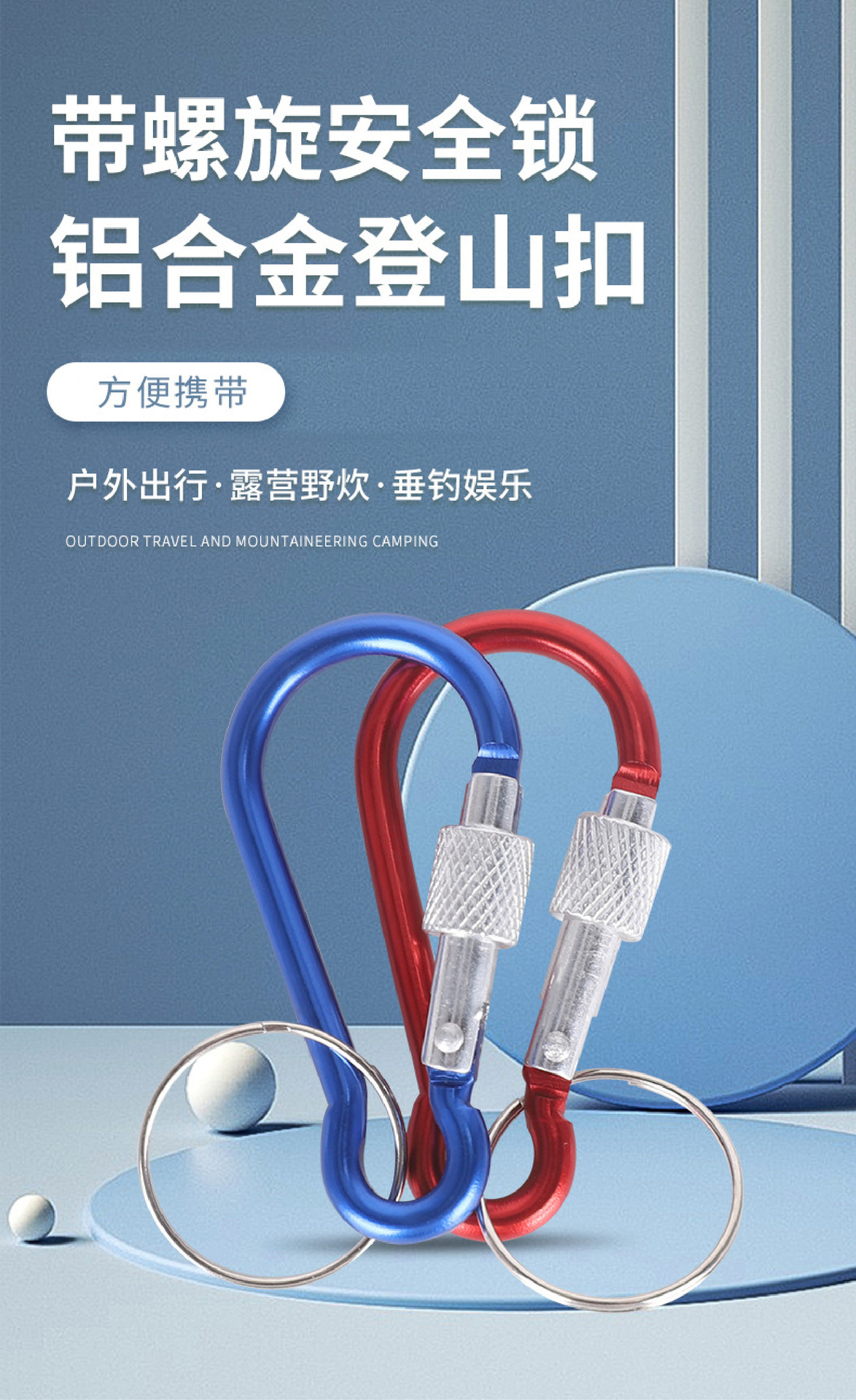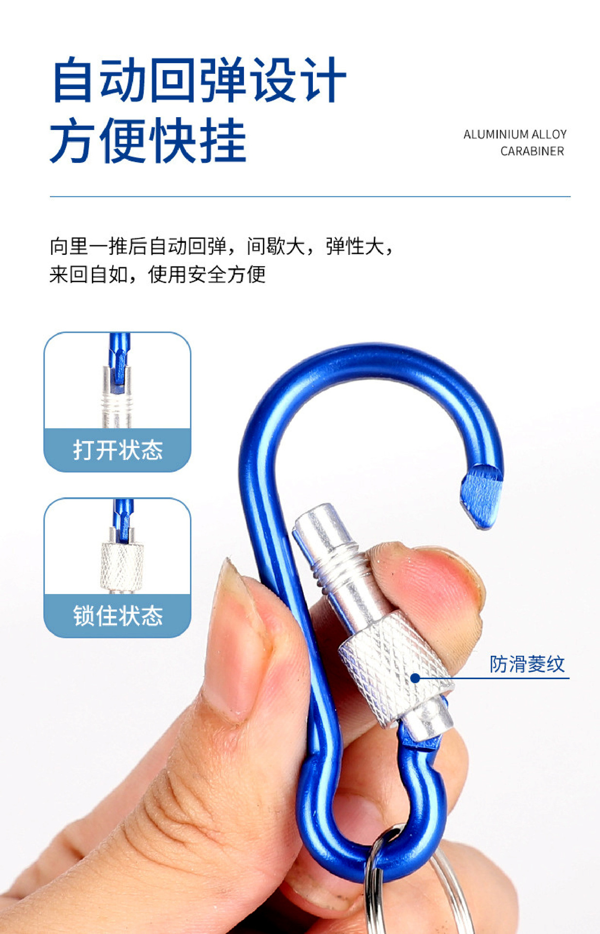 야외용 카라비너, 대형 퀵훅 열쇠고리, 배낭 걸이 버클, 잠금 장치가 있는 내하중 알루미늄 합금 후크, 물병 등산용 버클