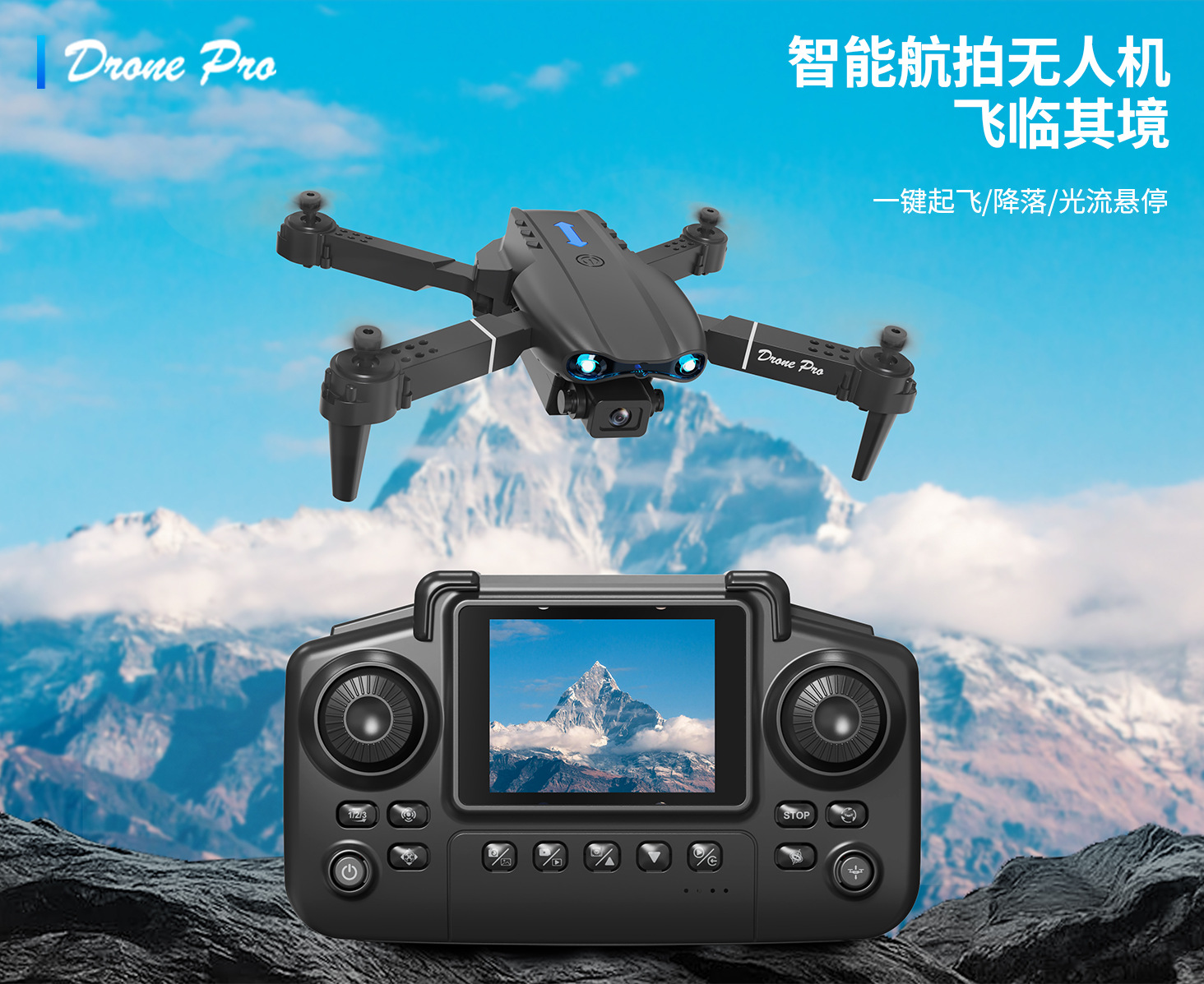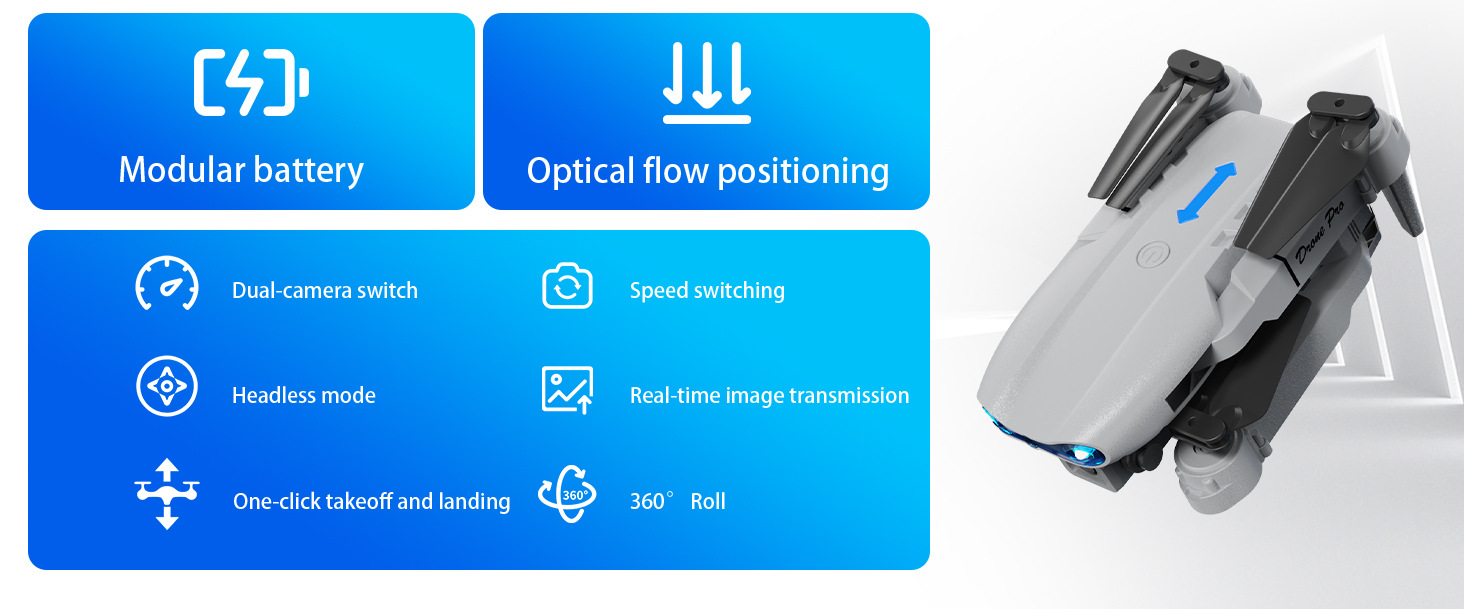 국경 간 신제품 E99Air 드론 스크린 제어 접이식 쿼드 콥터 광학 흐름 듀얼 카메라 원격 제어 항공기 장난감