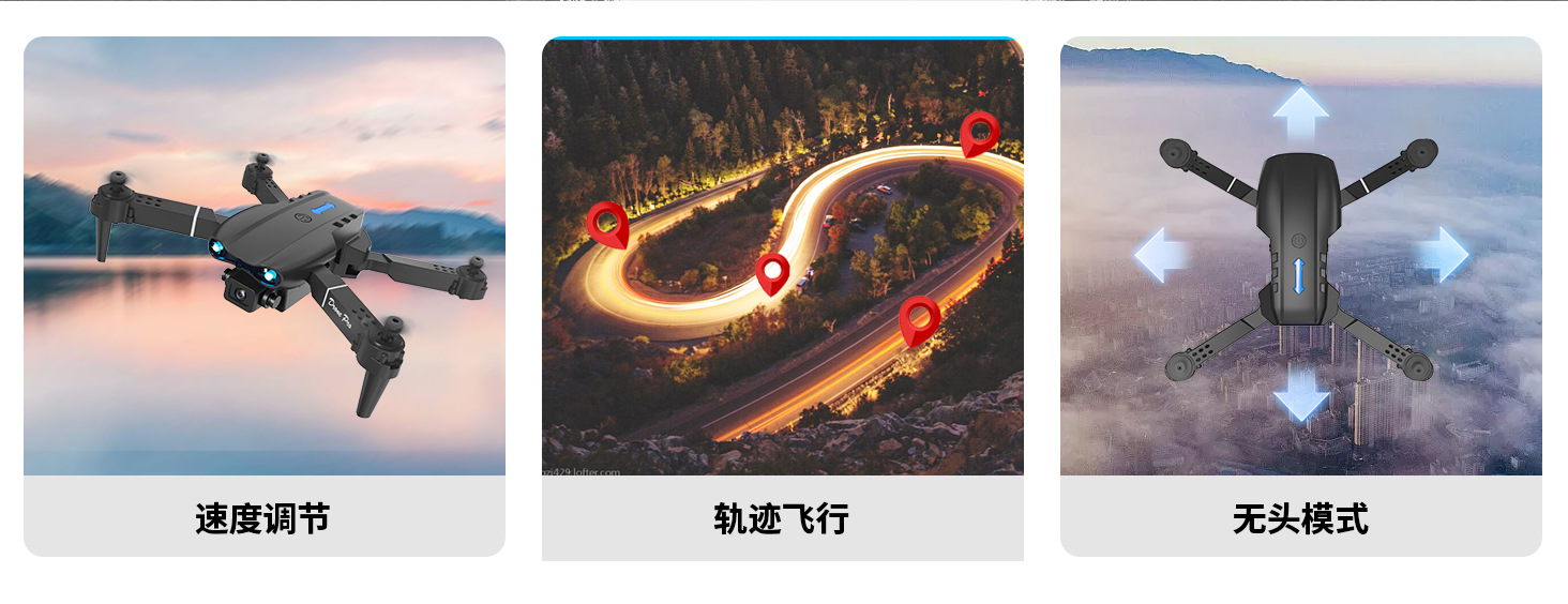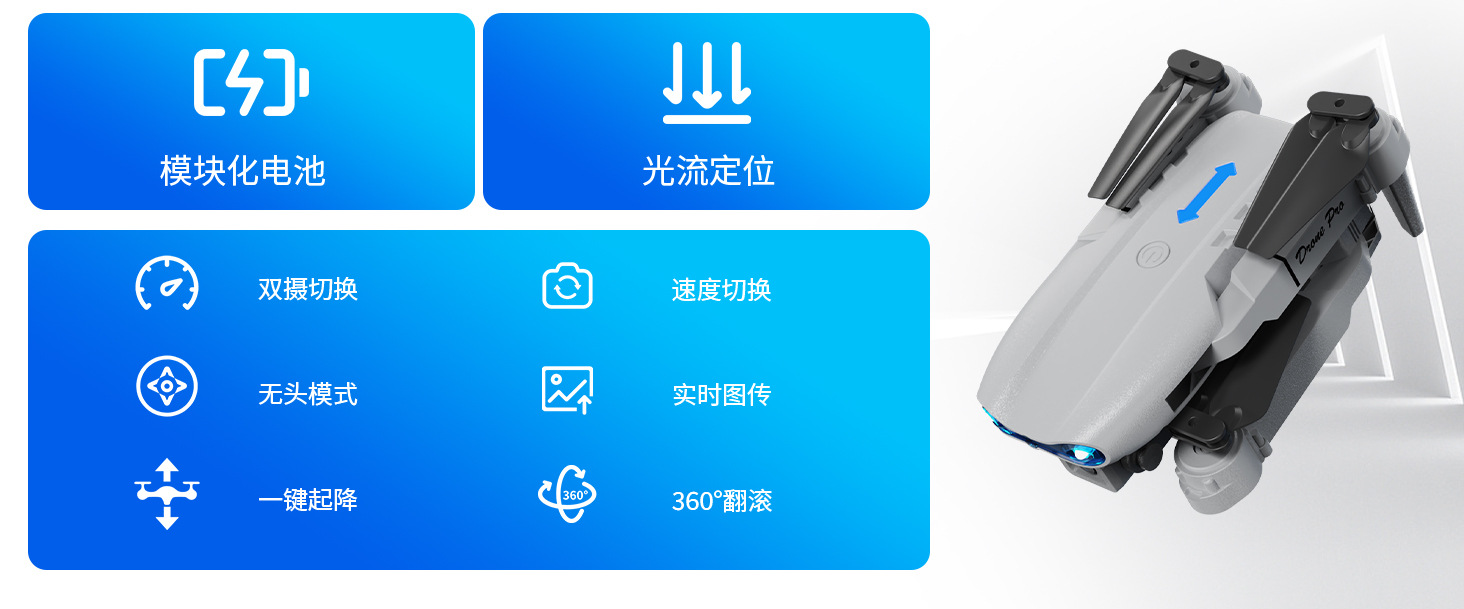 국경 간 신제품 E99Air 드론 스크린 제어 접이식 쿼드 콥터 광학 흐름 듀얼 카메라 원격 제어 항공기 장난감스토어 가기