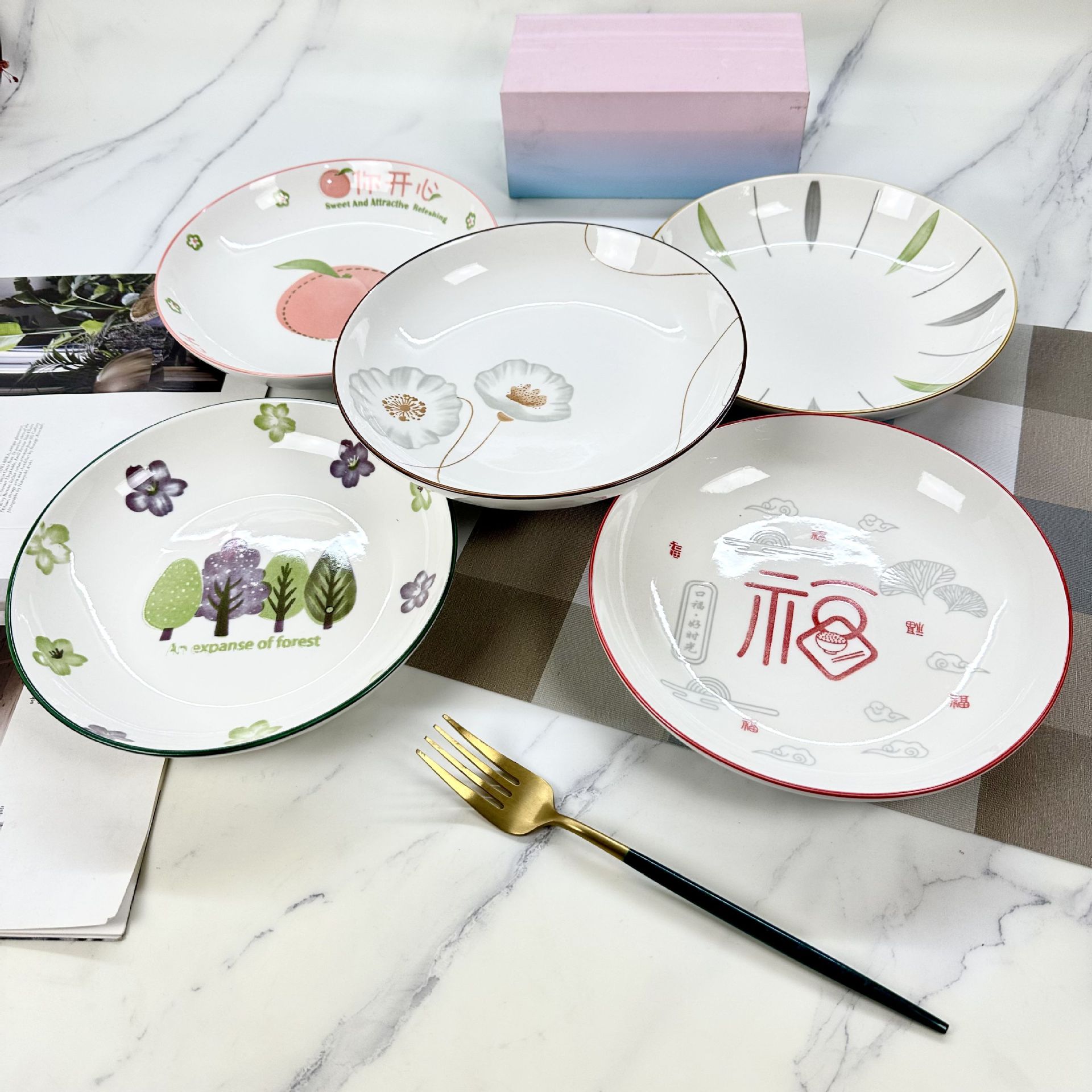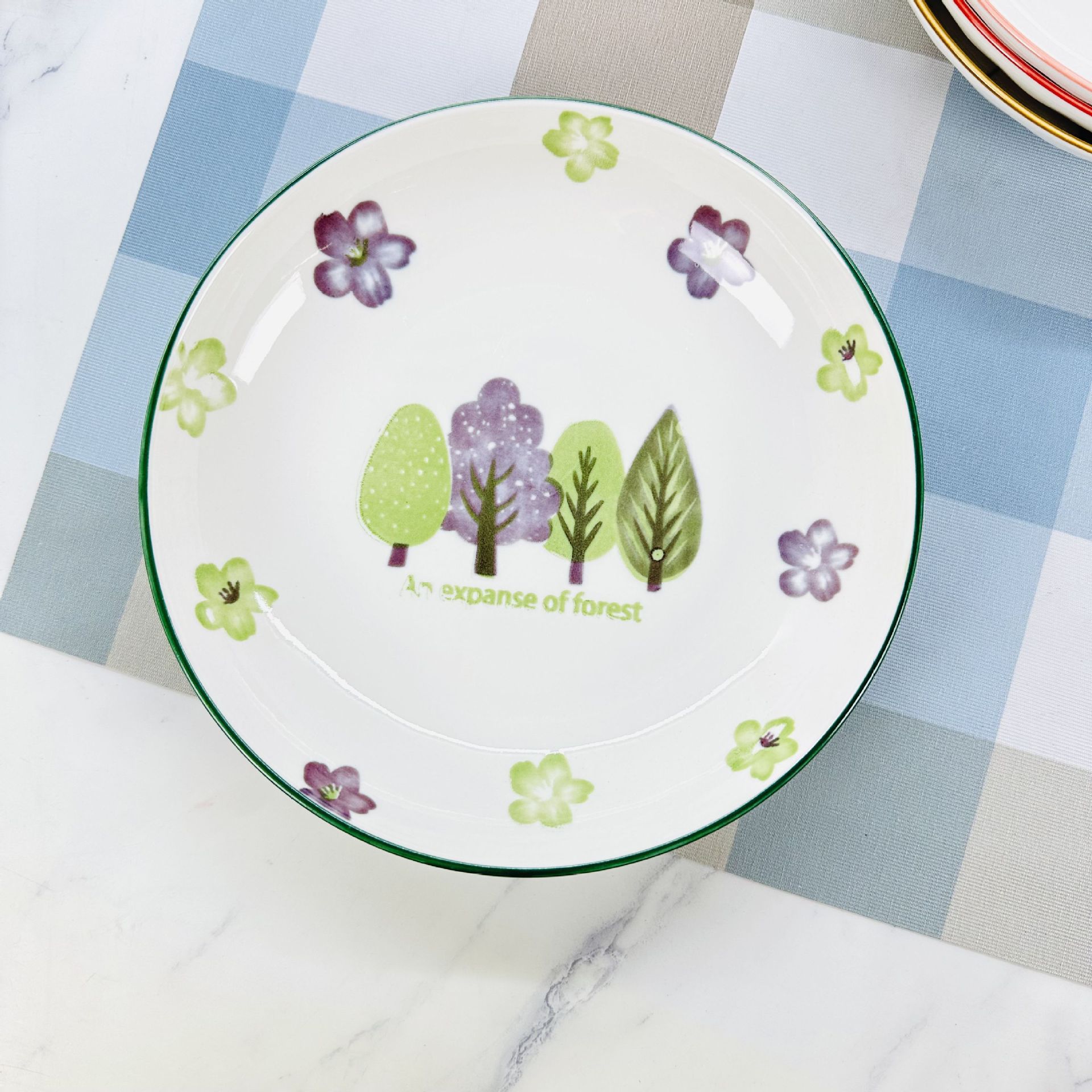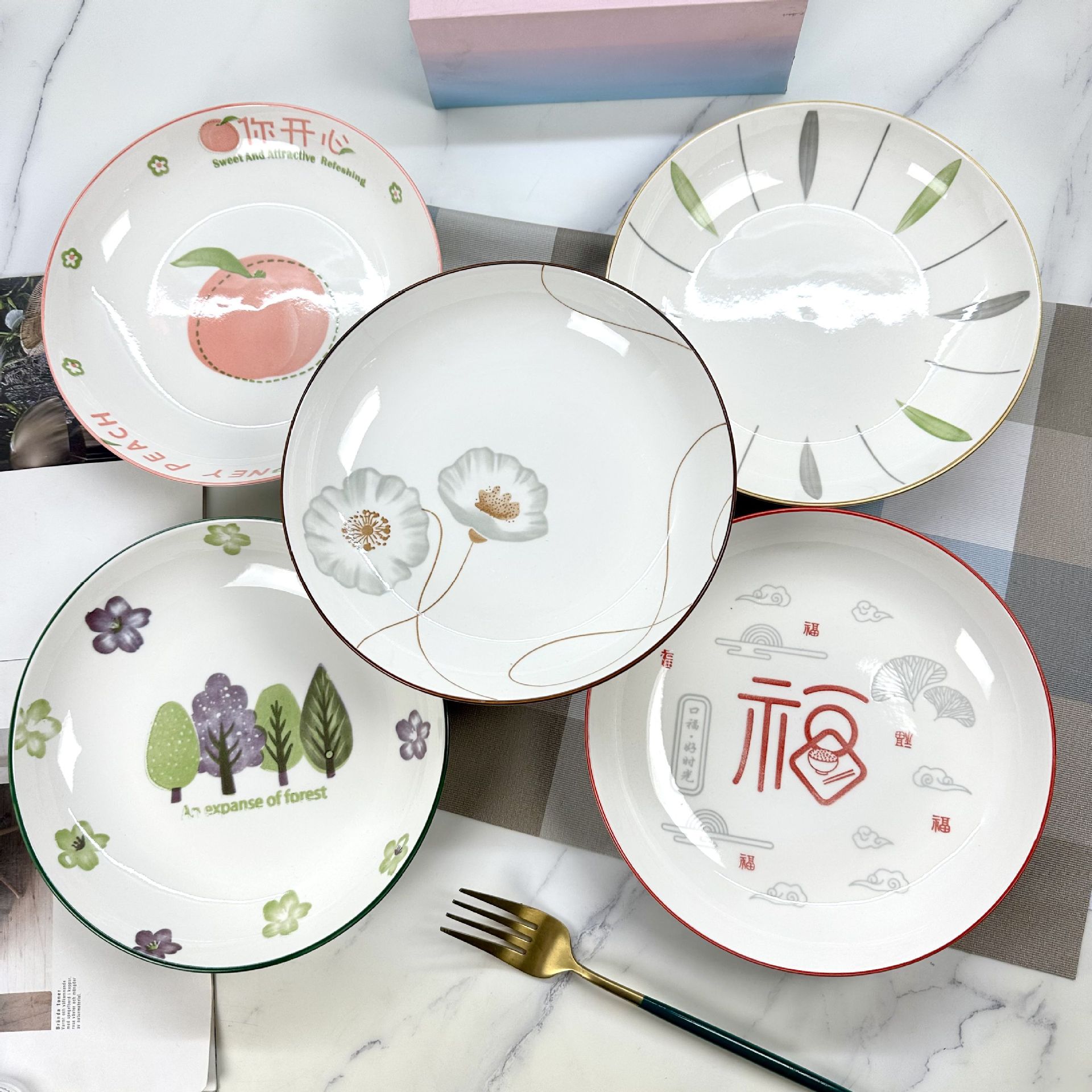 산시 도자기 도매 인쇄 8inch 레인 스톤 플레이트 가정용 간단한 접시 접시 2달러 매장 다중 매점