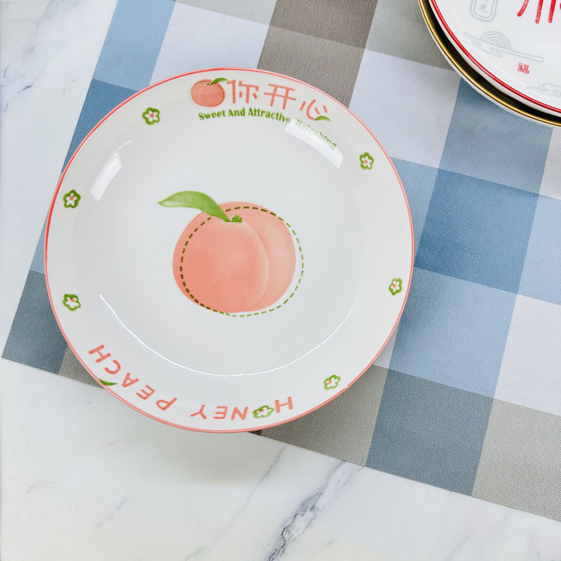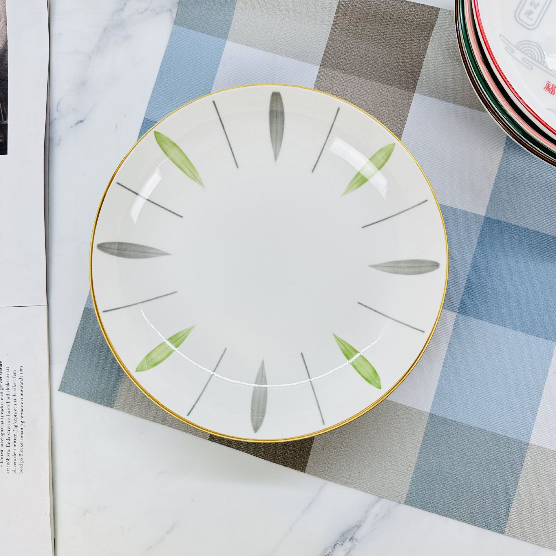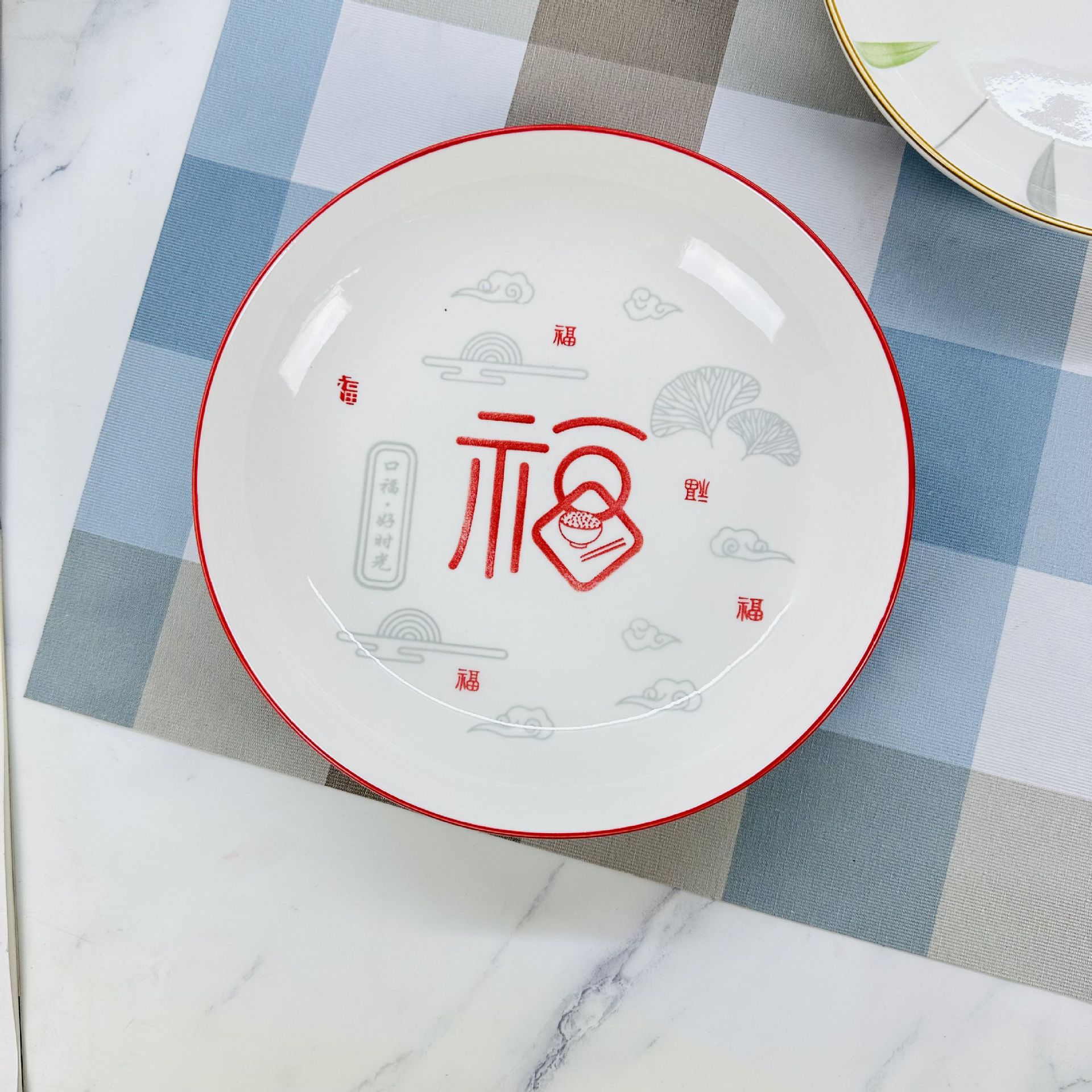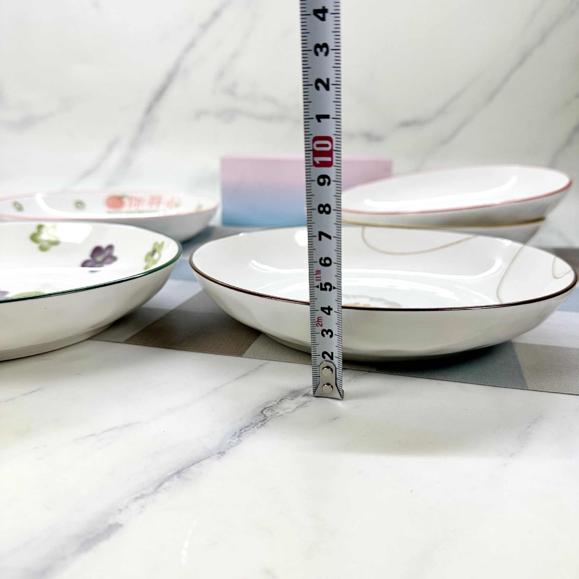 산시 도자기 도매 인쇄 8inch 레인 스톤 플레이트 가정용 간단한 접시 접시 2달러 매장 다중 매점