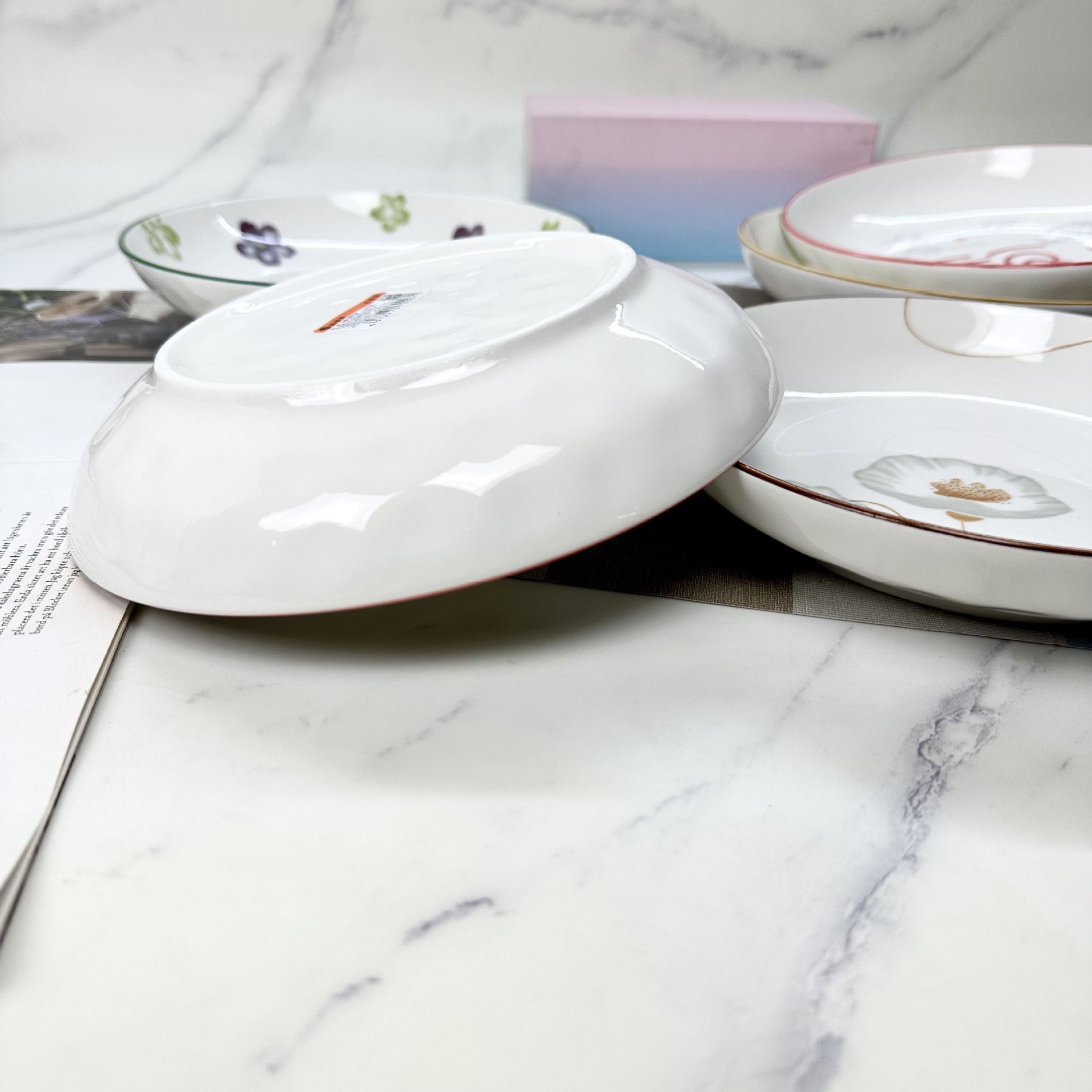 산시 도자기 도매 인쇄 8inch 레인 스톤 플레이트 가정용 간단한 접시 접시 2달러 매장 다중 매점스토어 가기