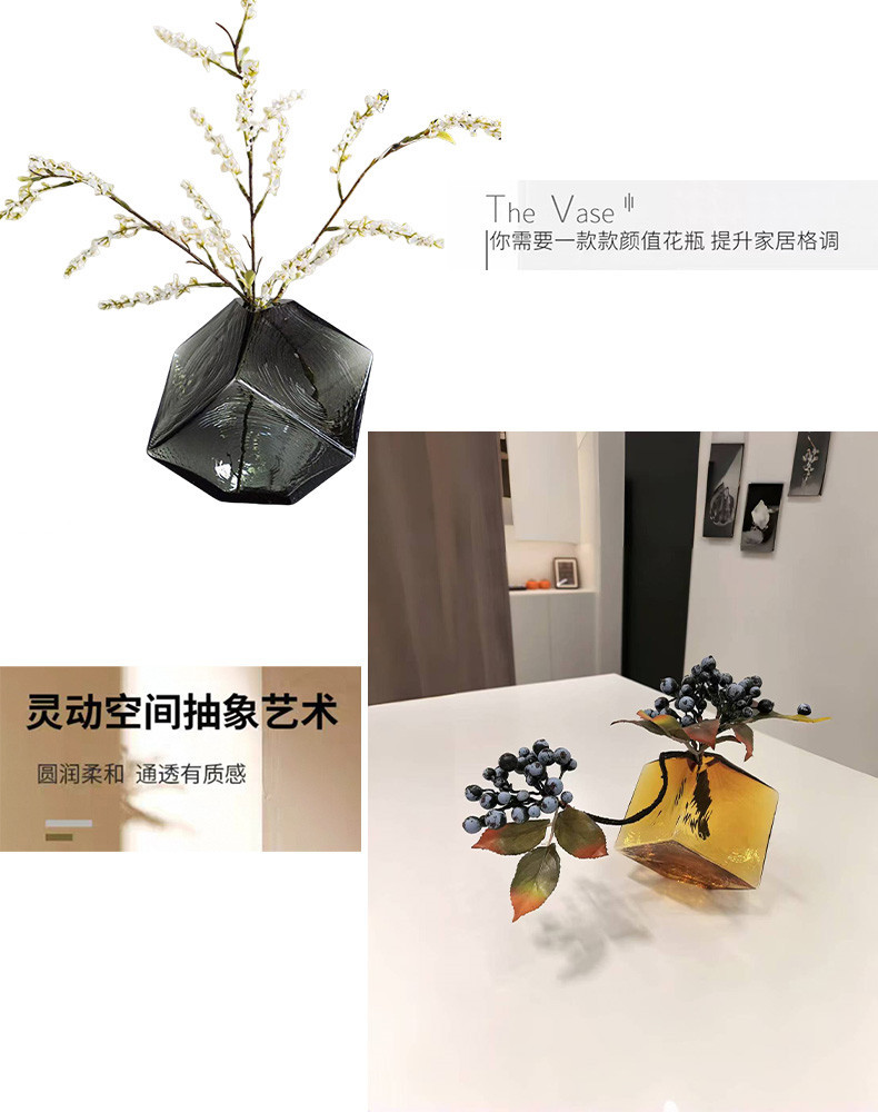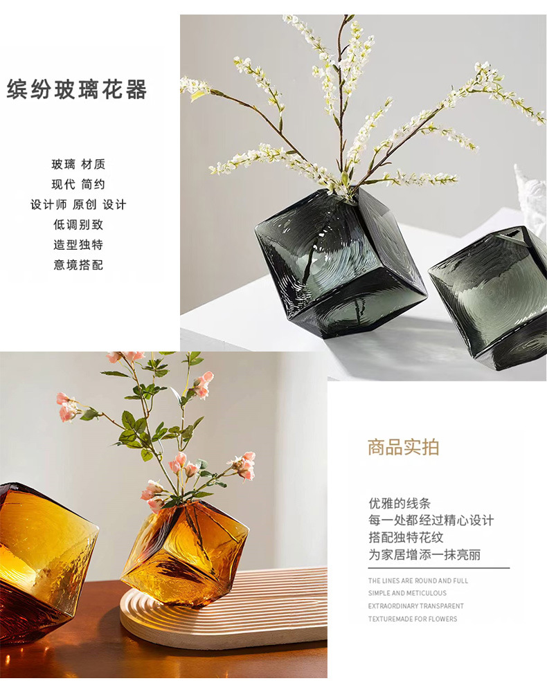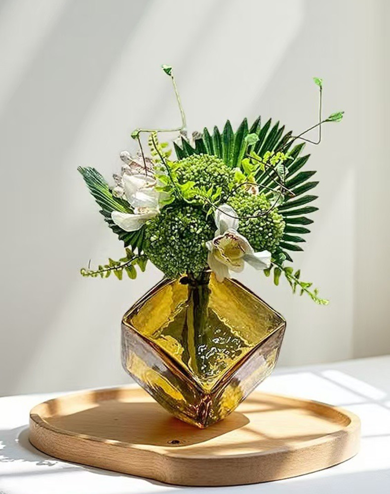 오목한 매직 스퀘어 수경 유리 꽃병 홈 부드러운 꽃꽂이 공예 기하학적 꽃병 장식품 컬러 유리스토어 가기