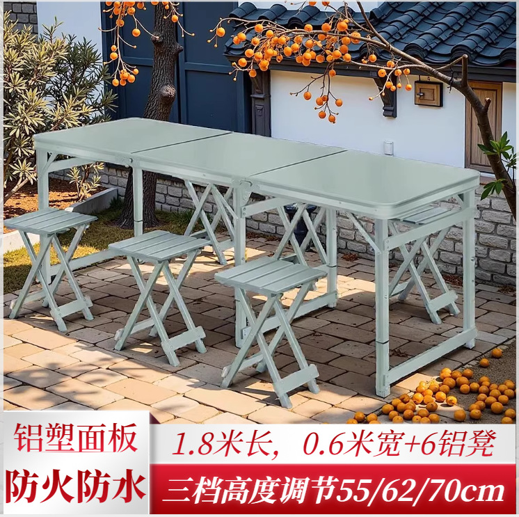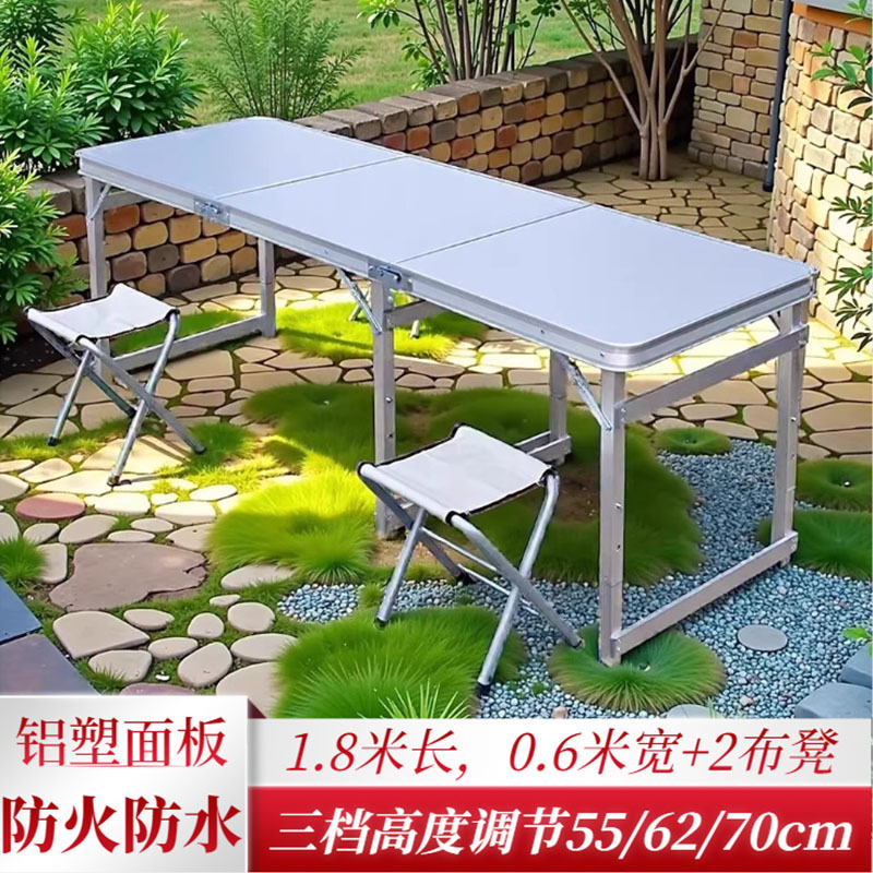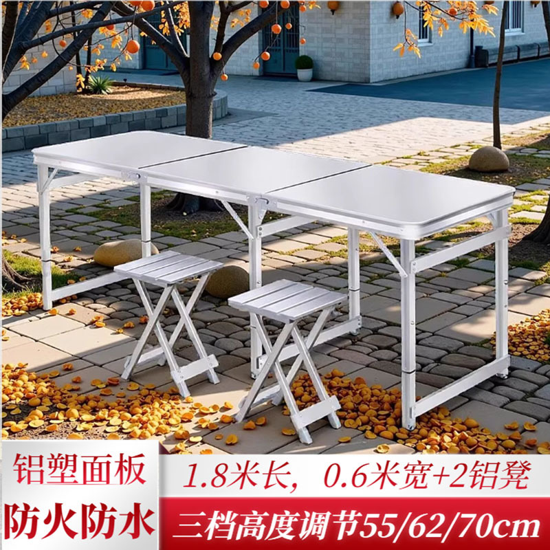 • 알루미늄 플라스틱 패널 데스크탑: 길이 1.2m + 알루미늄 스툴 2개, 강화된 디자인의 내화 및 방수 데스크탑 바닥