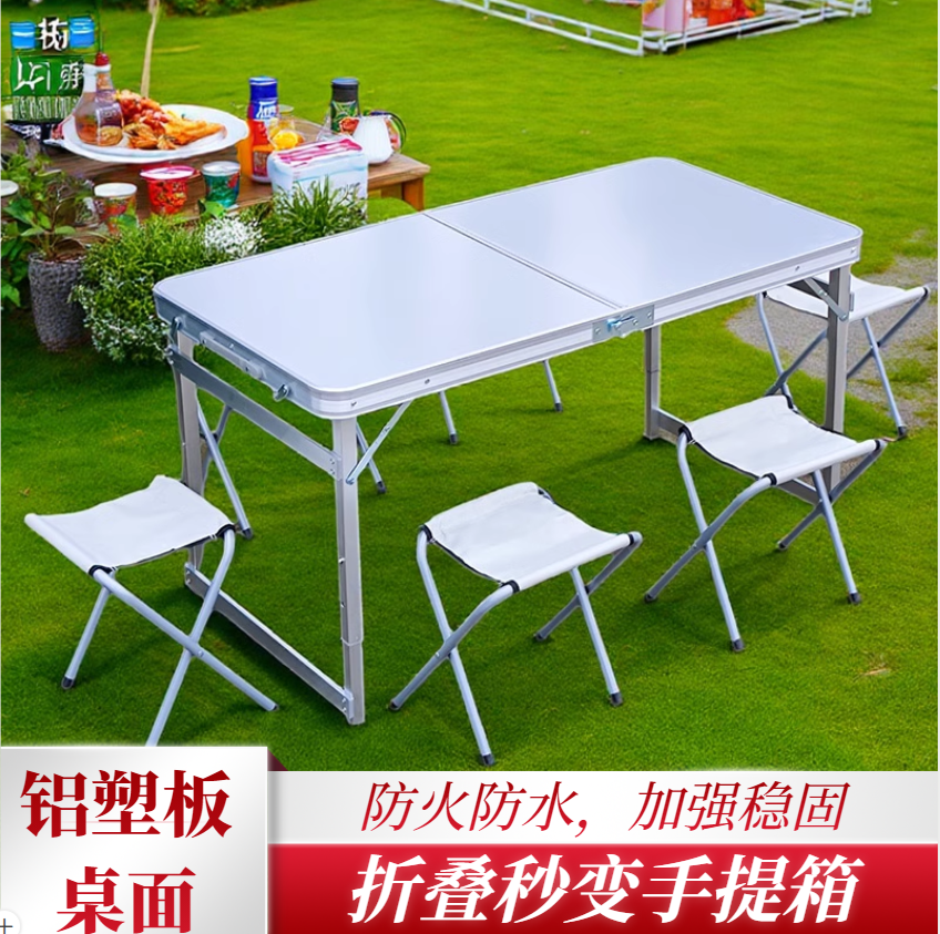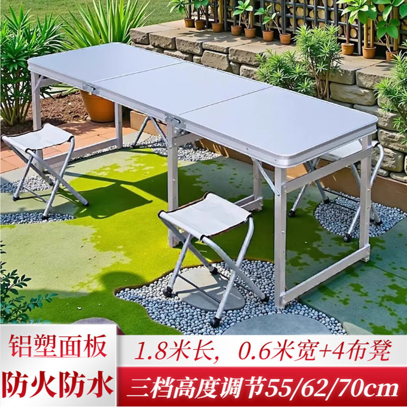 • 알루미늄 플라스틱 패널 데스크탑: 길이 1.2m개 + 천 스툴 4개, 강화된 디자인의 내화 및 방수 데스크탑 바닥