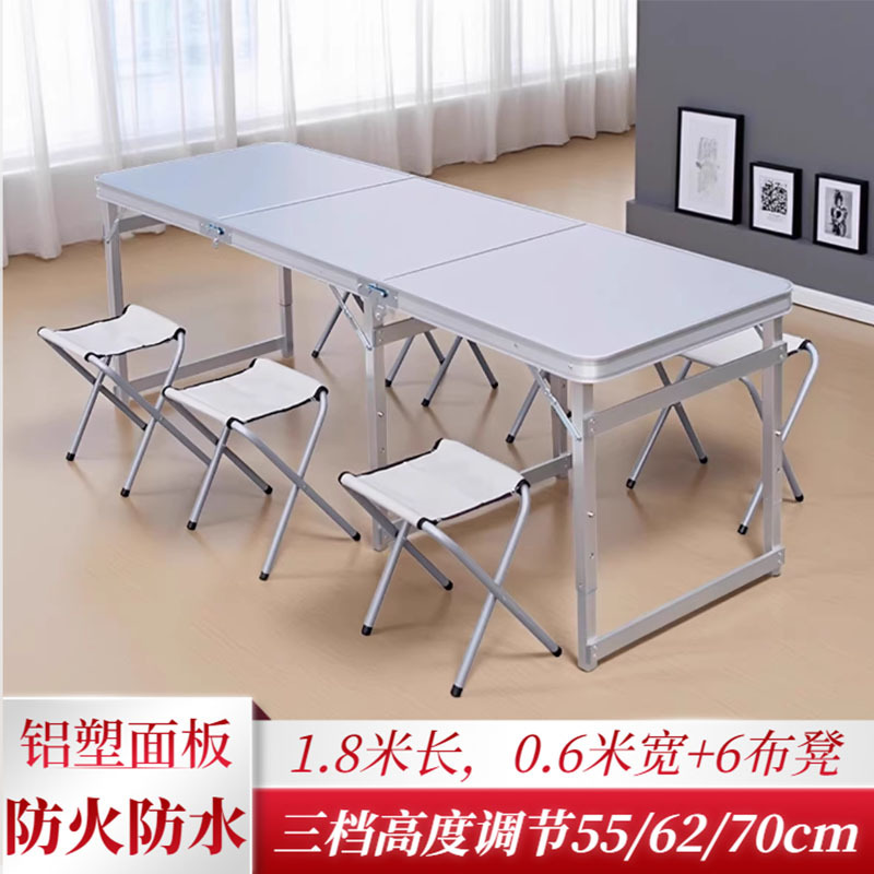 • 알루미늄 플라스틱 패널 데스크탑: 길이 1.2m + 천 스툴 6개, 바닥이 강화된 방화 및 방수 데스크탑