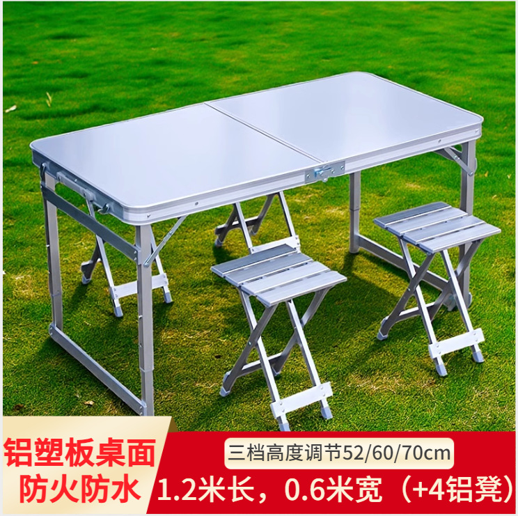 • 알루미늄 플라스틱 패널 데스크탑: 길이 1.2m + 알루미늄 스툴 4개, 내화 및 방수 데스크탑 하단 강화 디자인