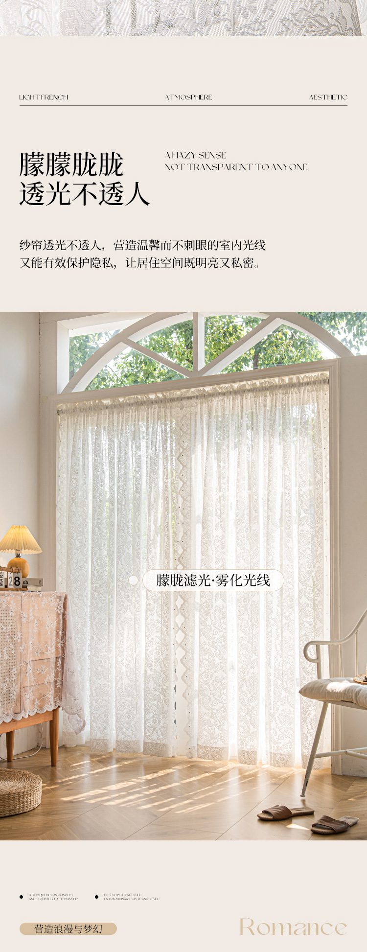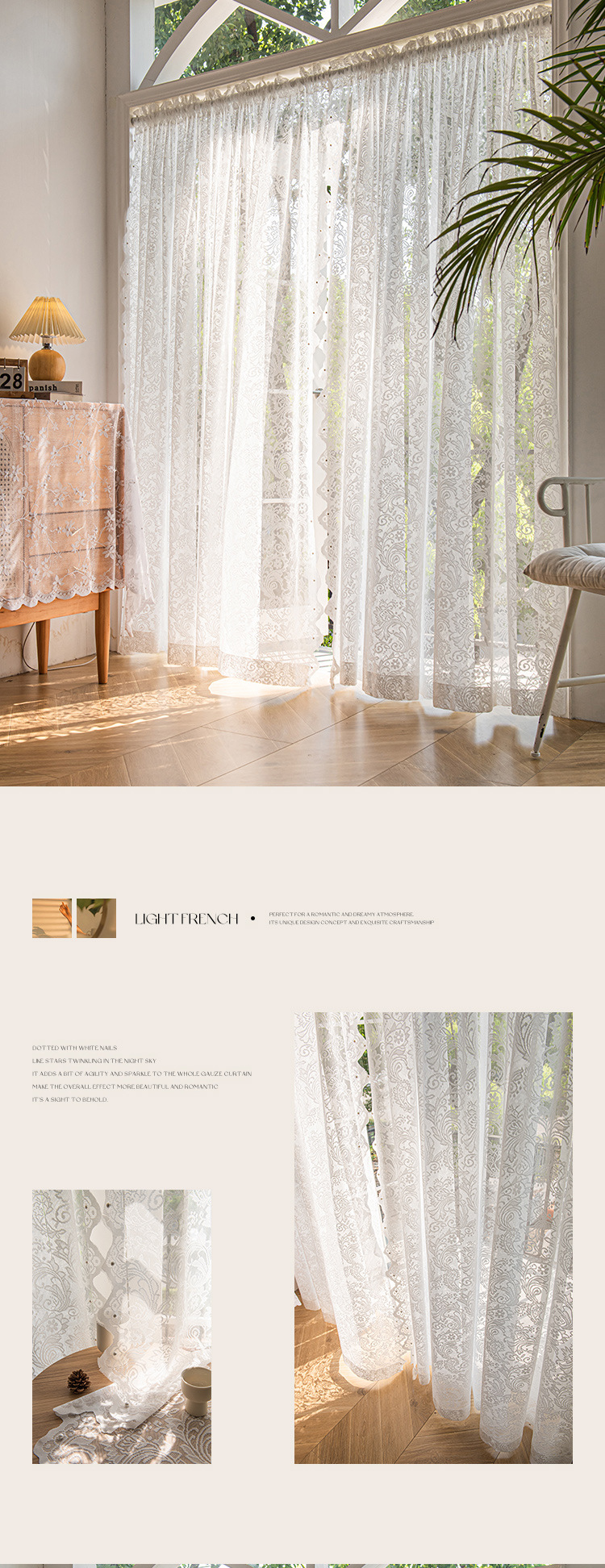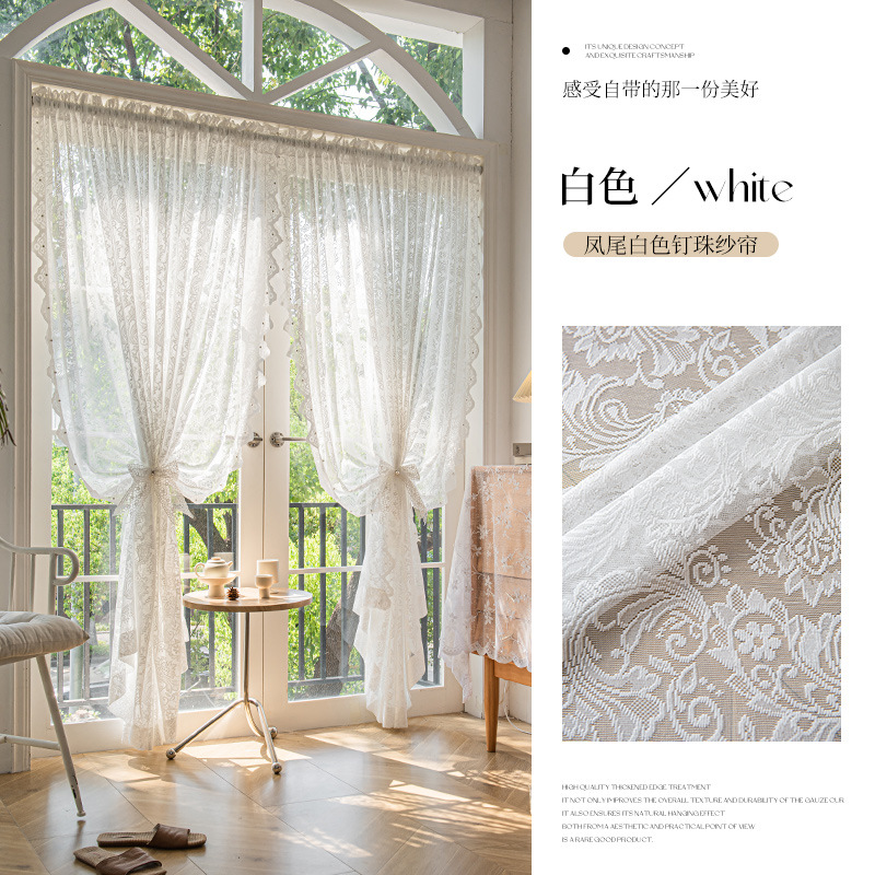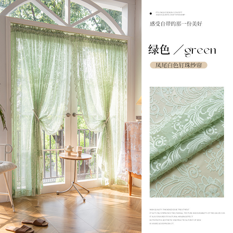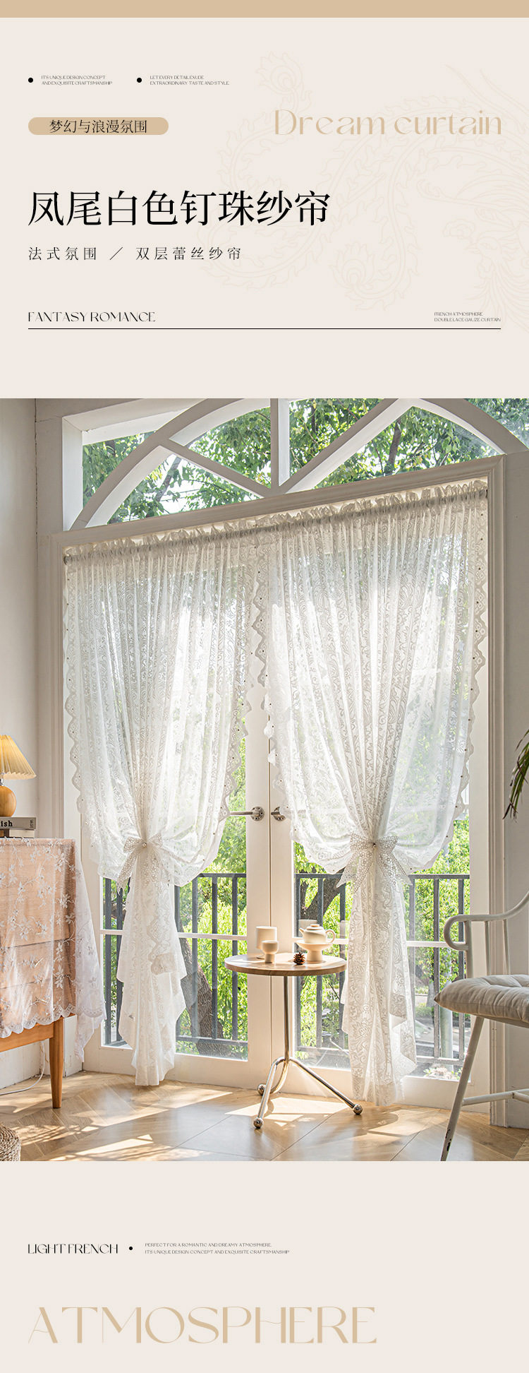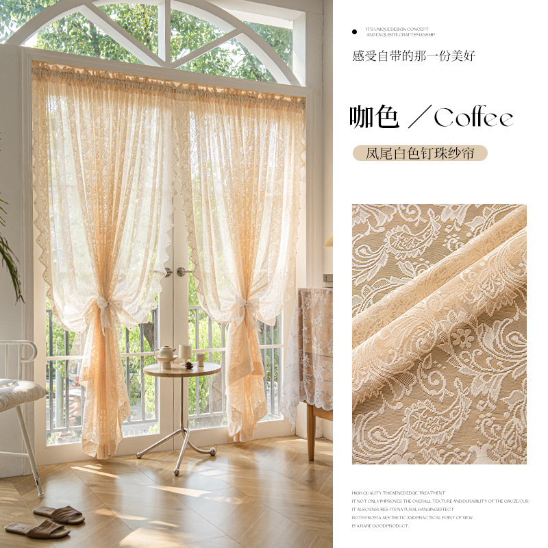 프랑스 복고풍 커튼, 꿈꾸는 레이스 거즈 커튼, 거실 발코니 침실 창 스크린, 불투명 피닉스 테일 레이스 거즈