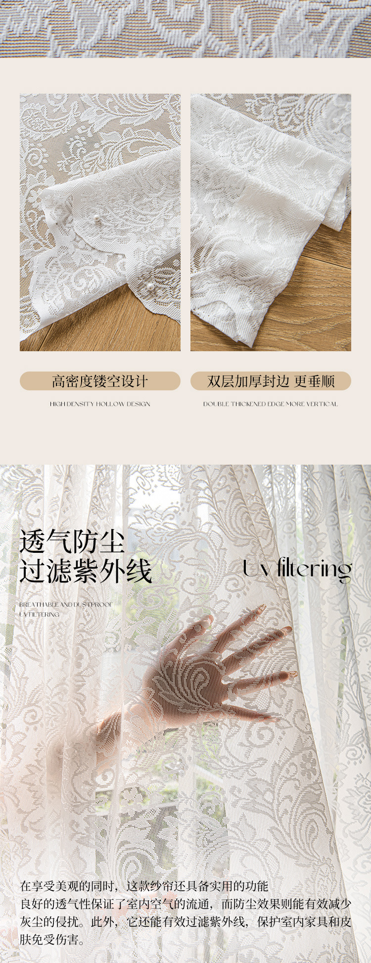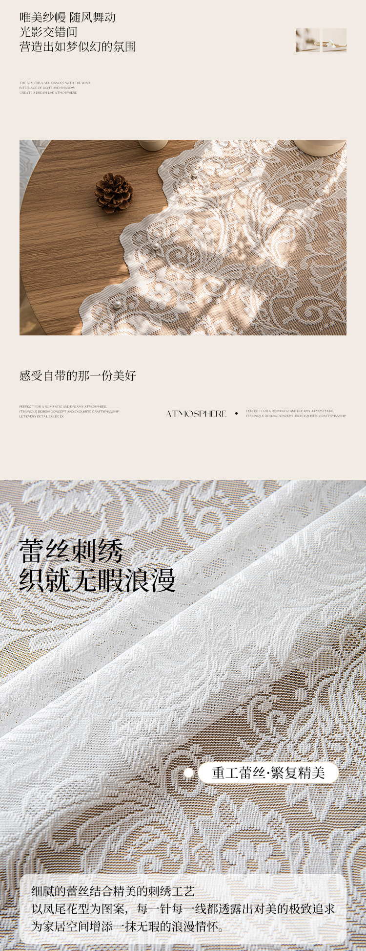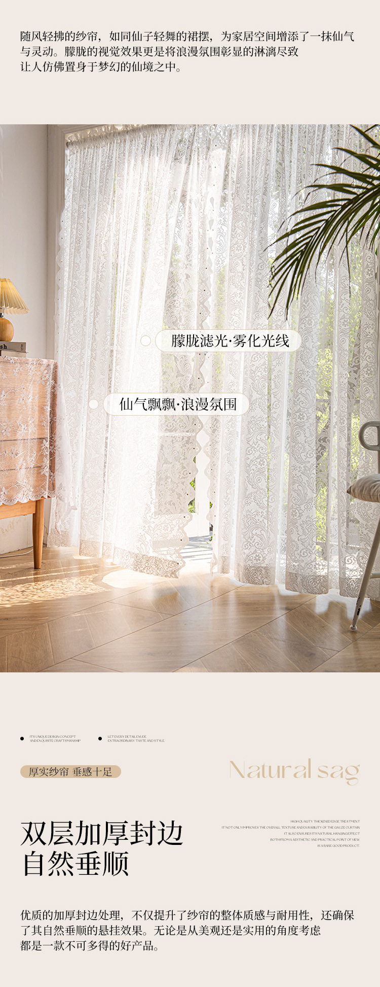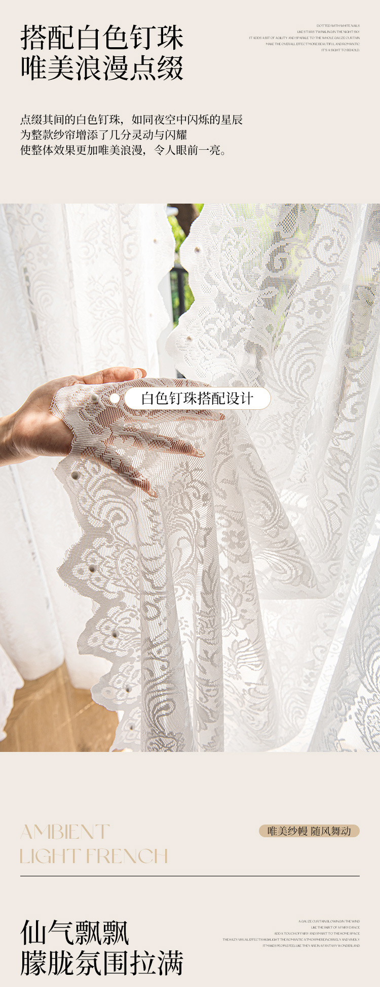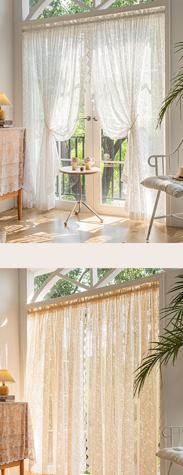 프랑스 복고풍 커튼, 꿈꾸는 레이스 거즈 커튼, 거실 발코니 침실 창 스크린, 불투명 피닉스 테일 레이스 거즈