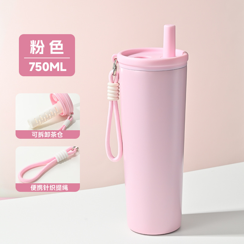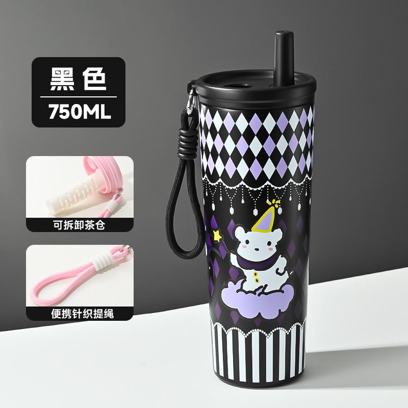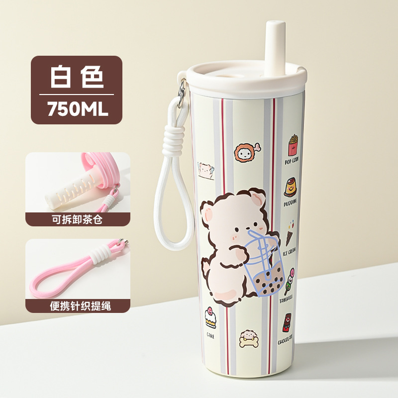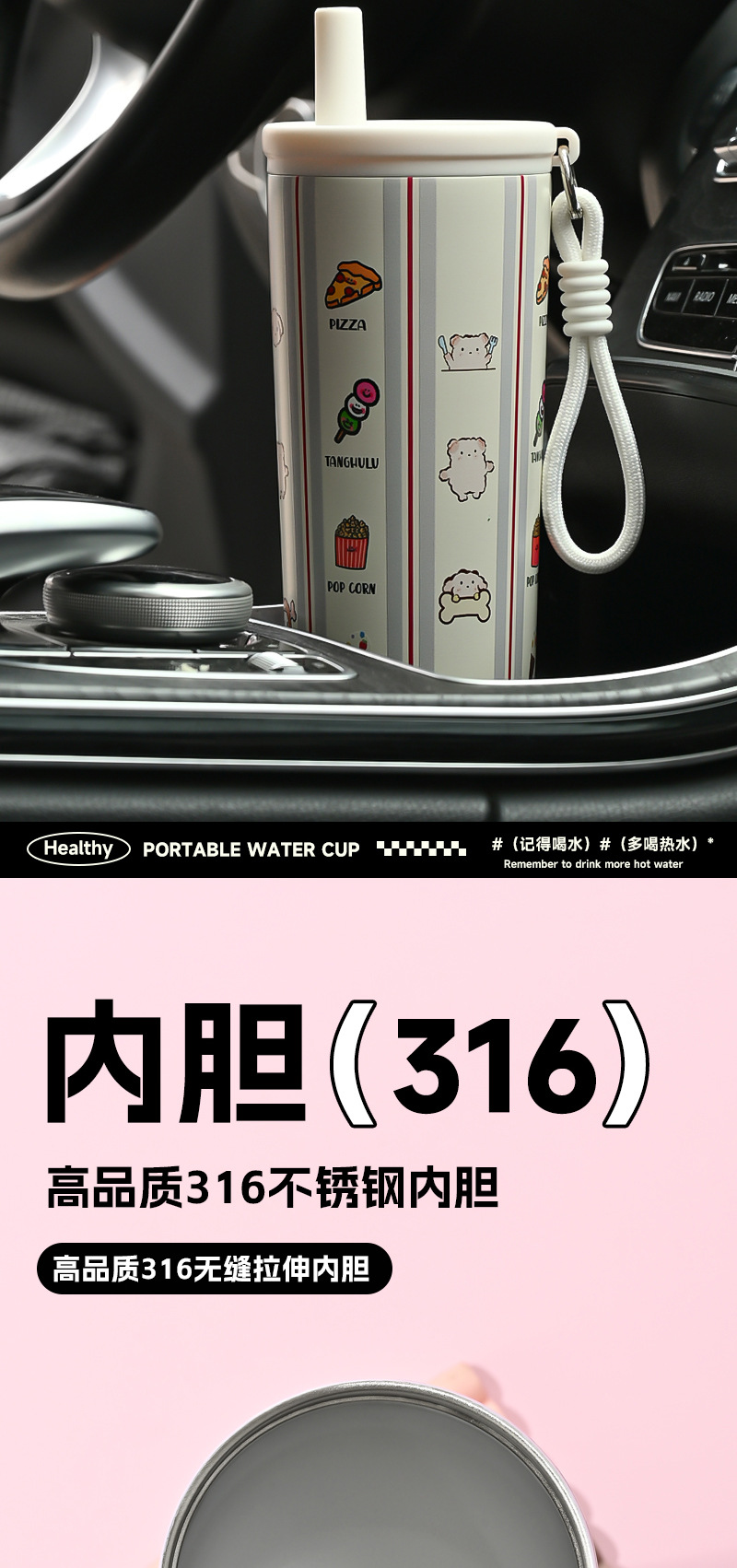 새로운 만화 휴대용 밀짚 컵 316 스테인레스 스틸 진공 절연 컵 차 저장고 차 물 분리 꽃 차 컵스토어 가기
