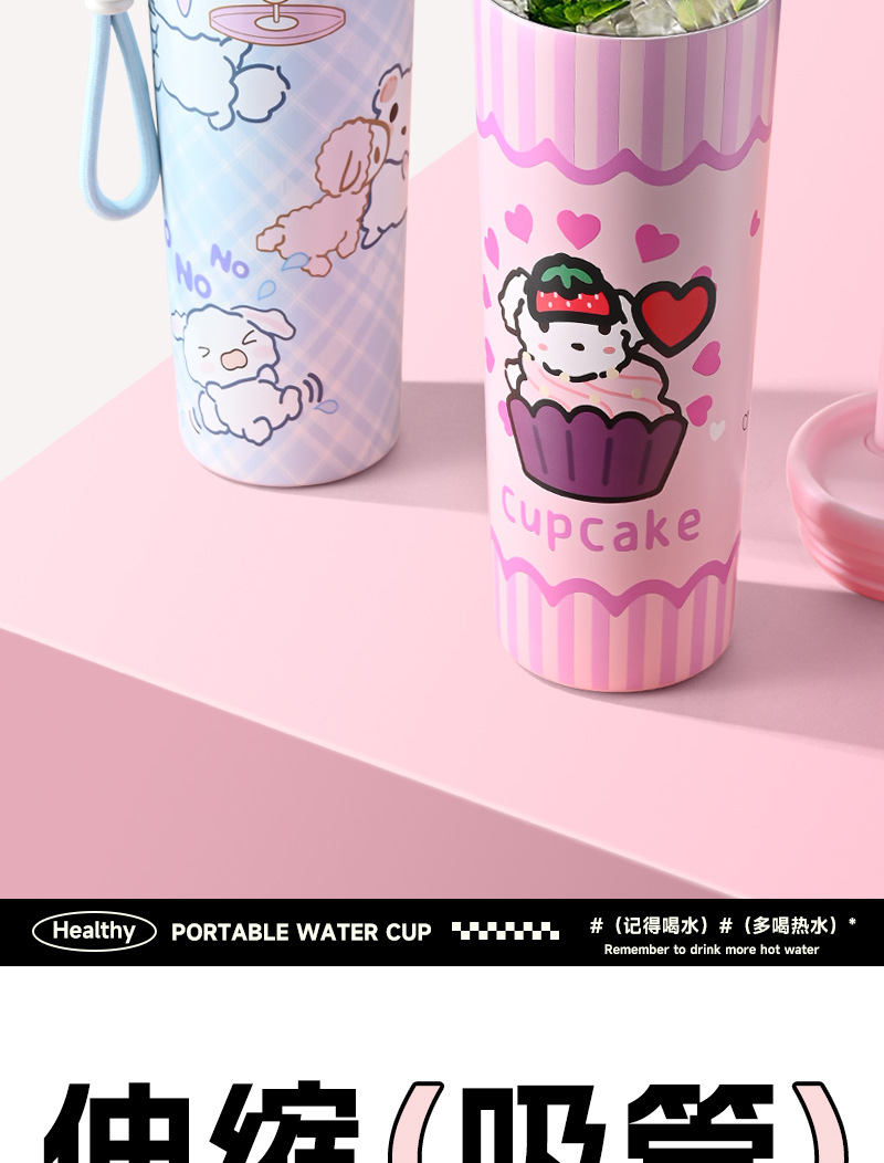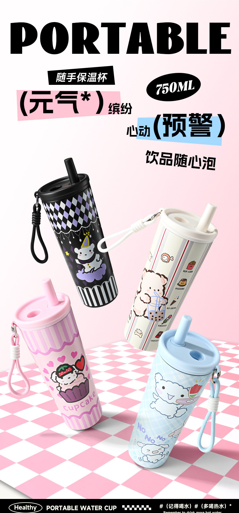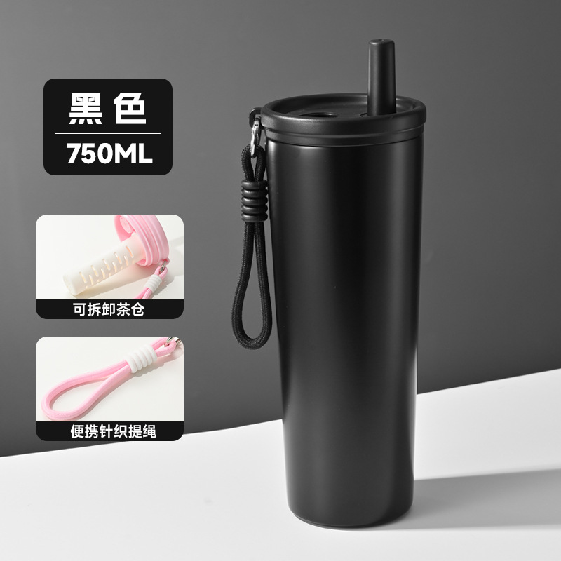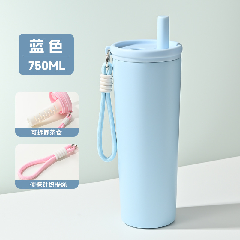 새로운 만화 휴대용 밀짚 컵 316 스테인레스 스틸 진공 절연 컵 차 저장고 차 물 분리 꽃 차 컵스토어 가기