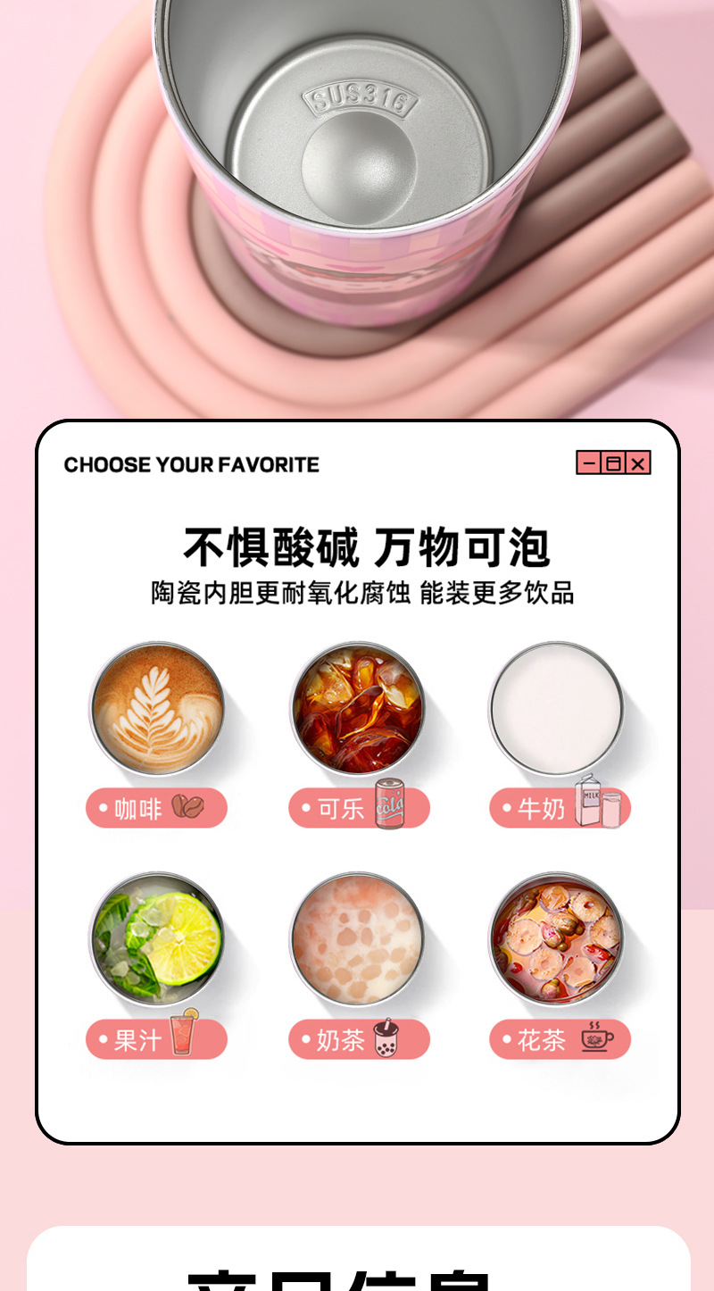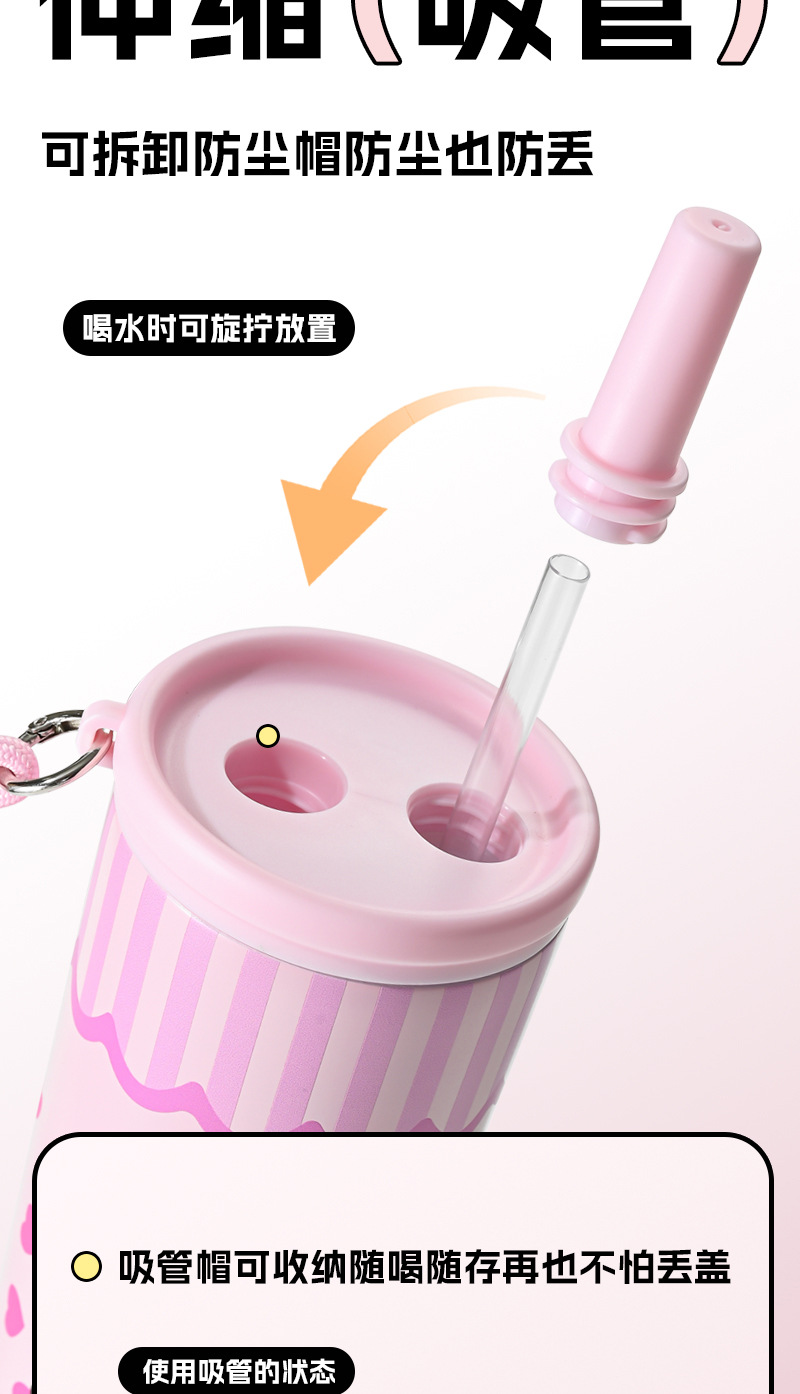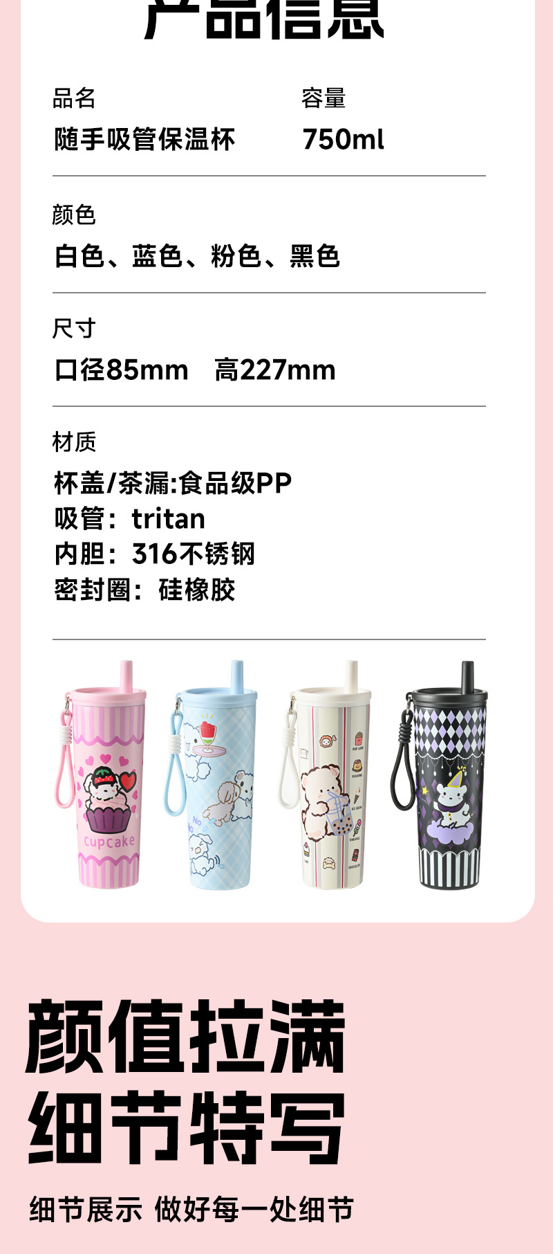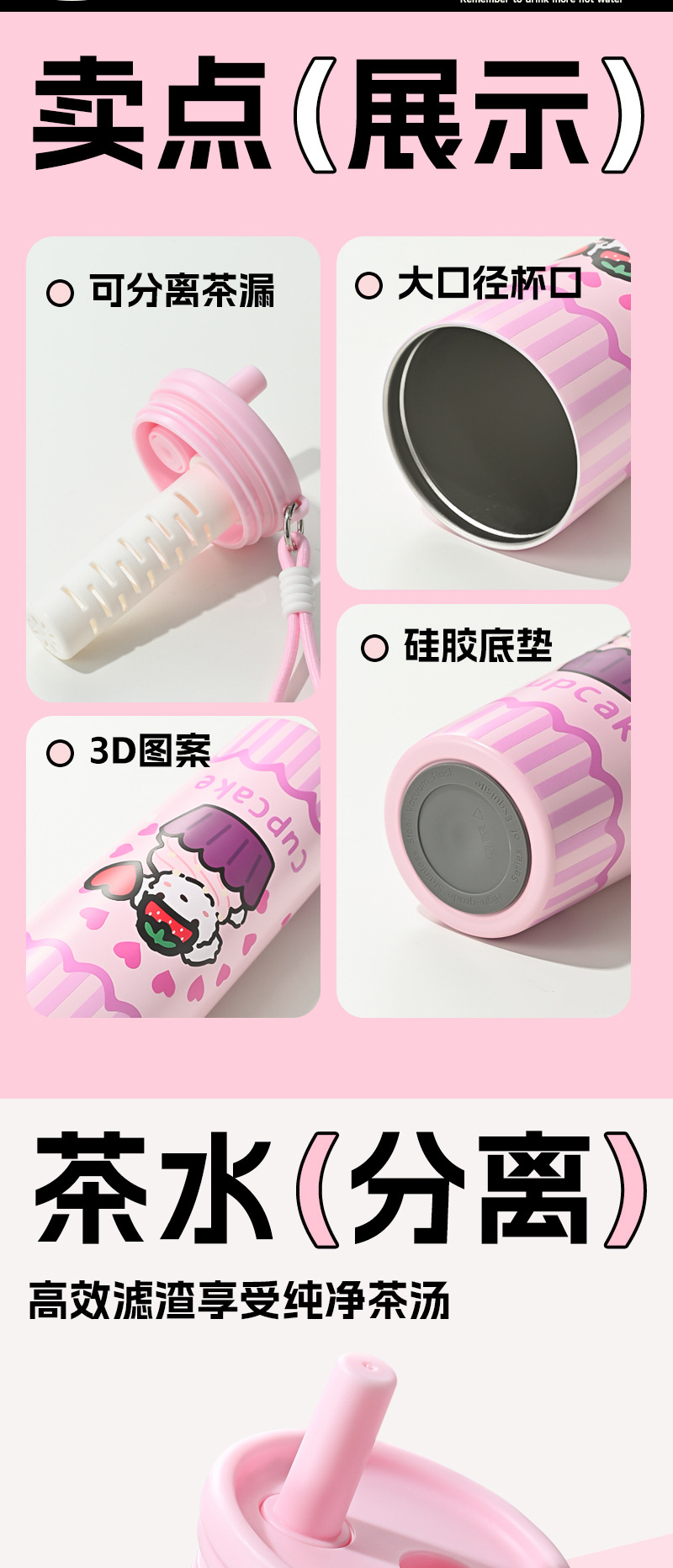 새로운 만화 휴대용 밀짚 컵 316 스테인레스 스틸 진공 절연 컵 차 저장고 차 물 분리 꽃 차 컵