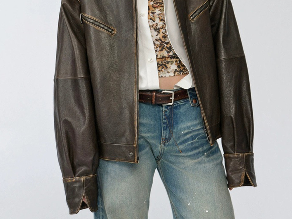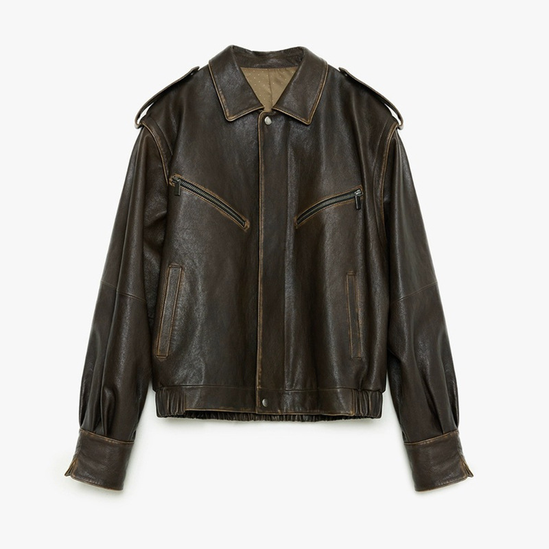 천연 가죽 자켓, 식물성 소가죽 소매, 탈부착 가능한 와이드 버전, 여성용 레트로 디스트레스드 오토바이 라펠 재킷스토어 가기
