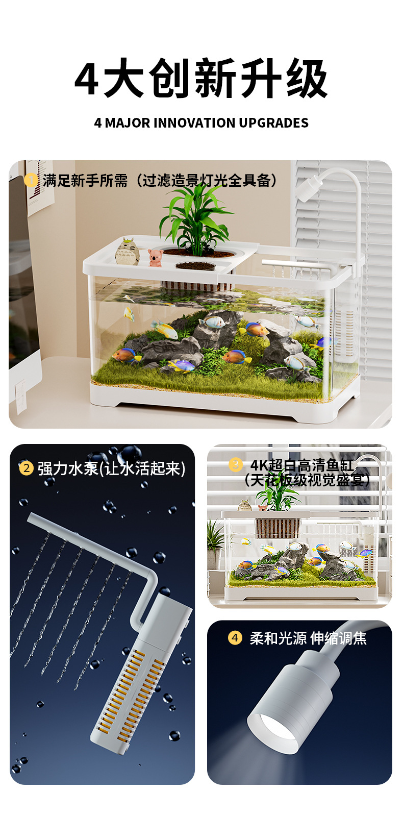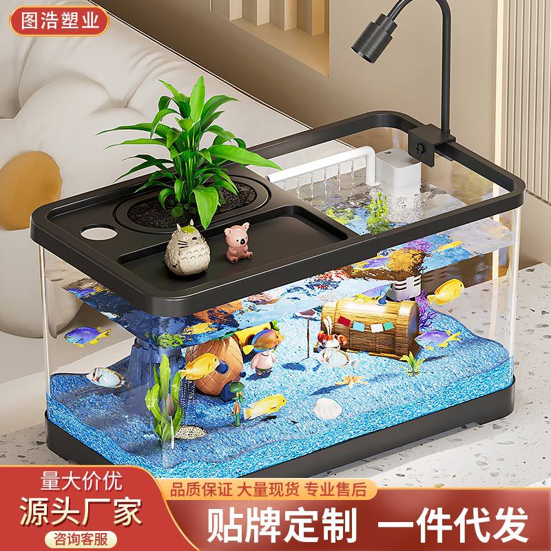 가정용 수조, 수족관, 거실 데스크탑, 생태 순환 탱크, 필터 및 산소화 일체형 탱크, 뚜껑이 있는 조경 금붕어 탱크