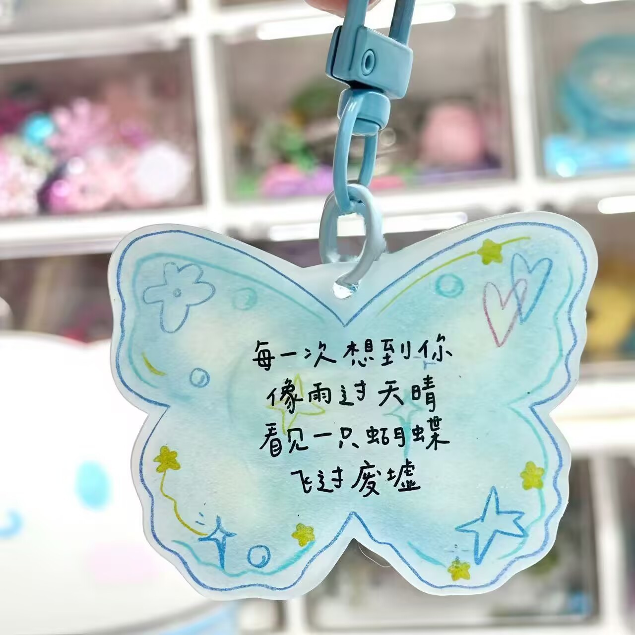 Tao Zhe 나비 가사 텍스트 아크릴 키 체인 치유 아크릴 텍스트 펜던트 배낭 펜던트 선물