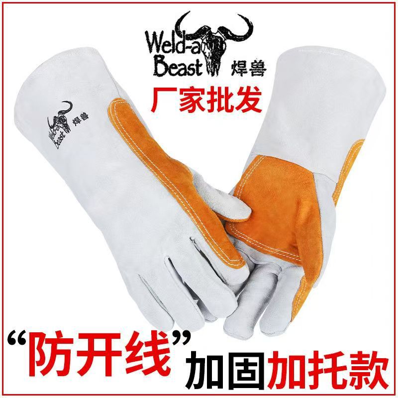 용접용 소가죽 용접공 장갑, 단열, 내열, 화상 방지, 고온 방지, 두껍고 내마모성, 노동 보호 장갑, 방말스토어 가기