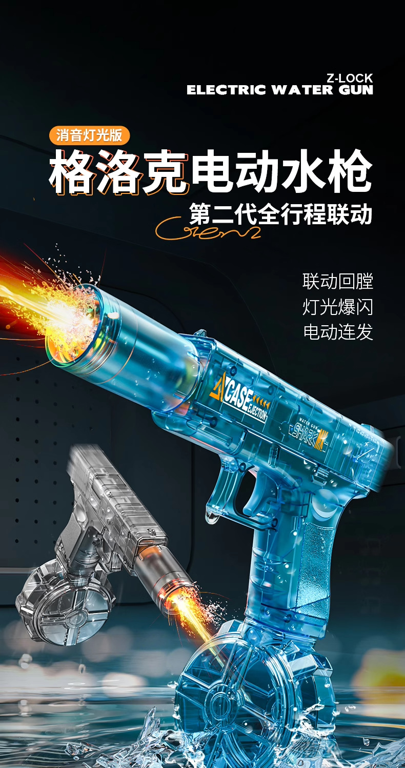 2025 새로운 Glock 전기 물총 어린이 장난감 물 스프레이 자동 고압 강력한 장거리 소년스토어 가기