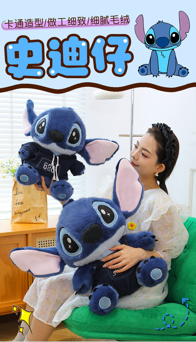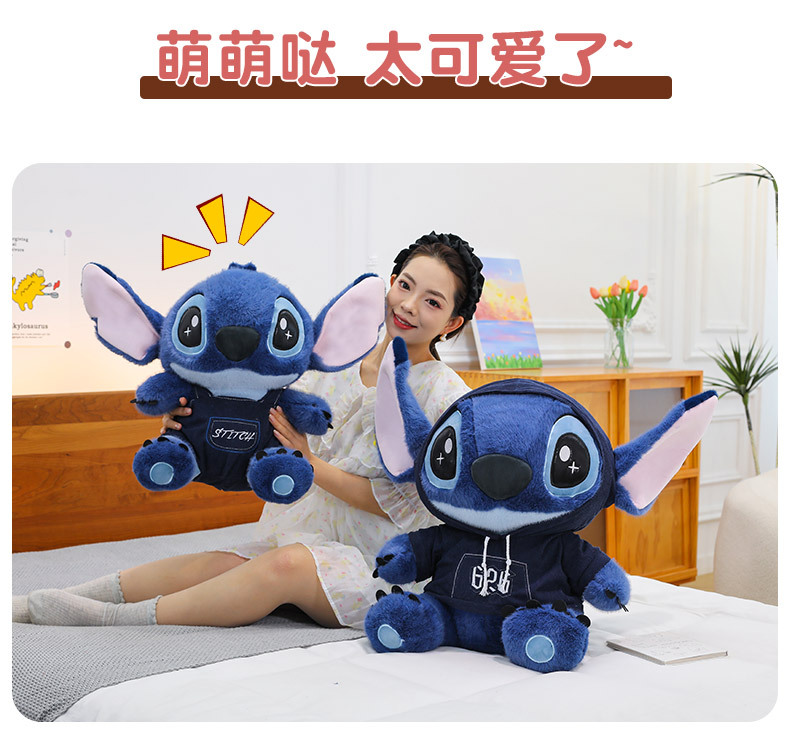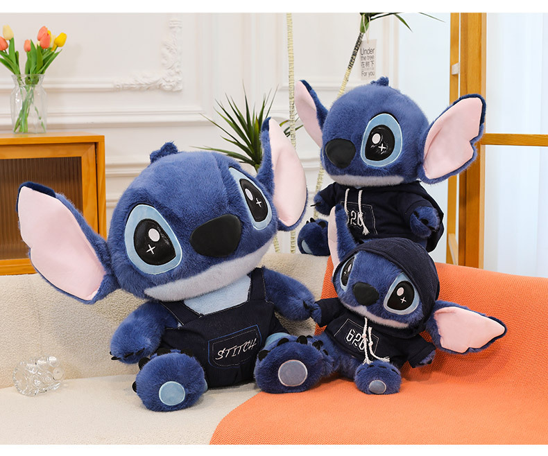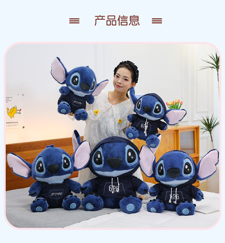 스티치 작업복 봉제 인형 귀여운 스티치 스웨트 셔츠 인형 여성 국경 간 인기 생일 선물 도매스토어 가기